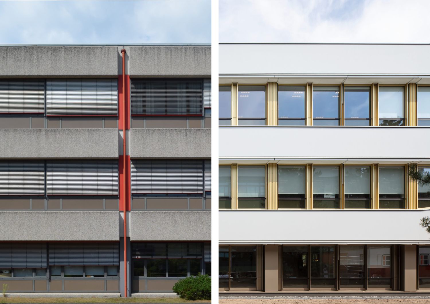 What started as an aesthetic upgrade eventually evolved into the realization of a completely new building skin. The frames have been replaced by a specially produced system with pronounced vertical profiles, higher insulation values โ€‹โ€‹and drain hatches for all workplaces.