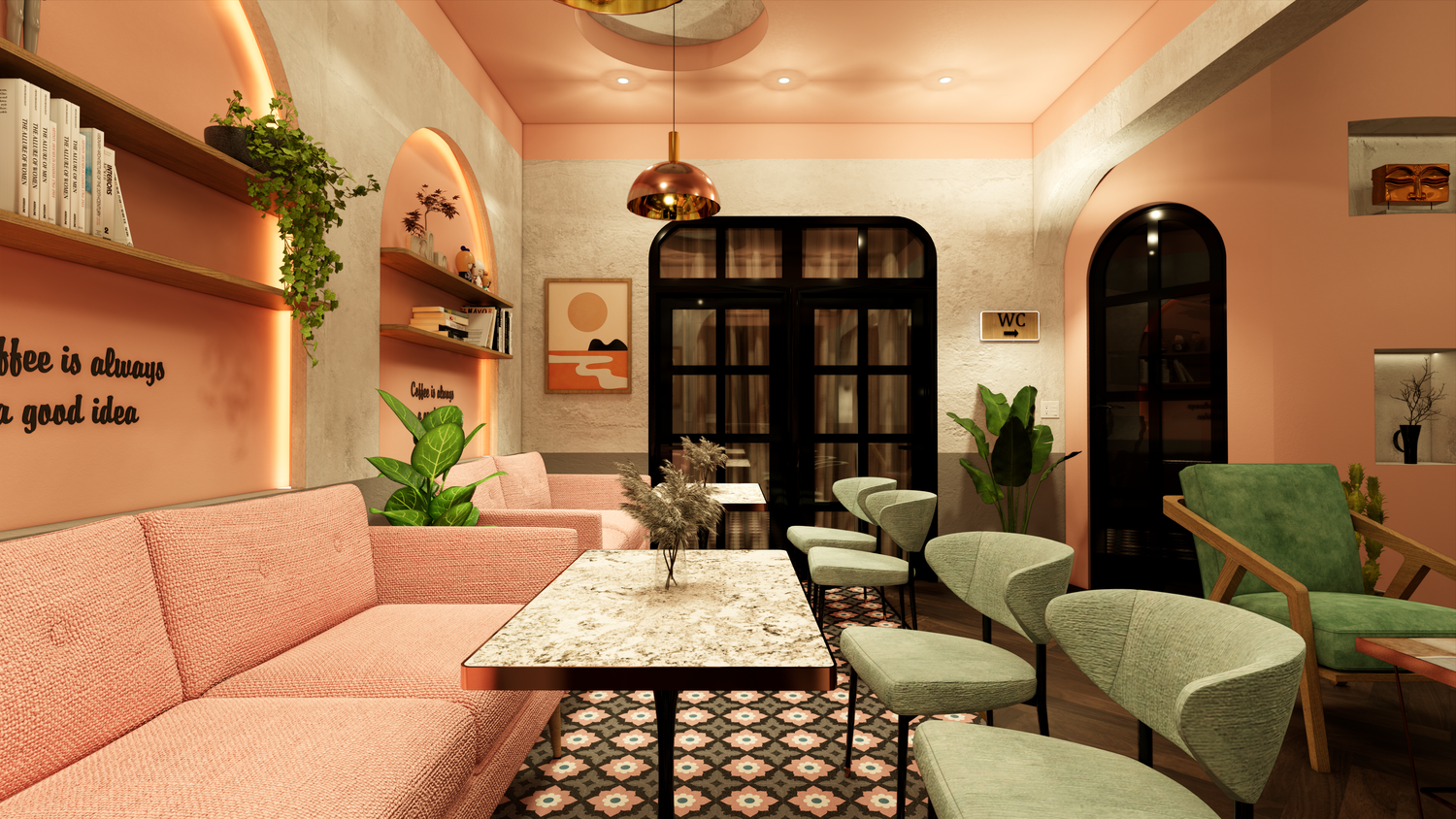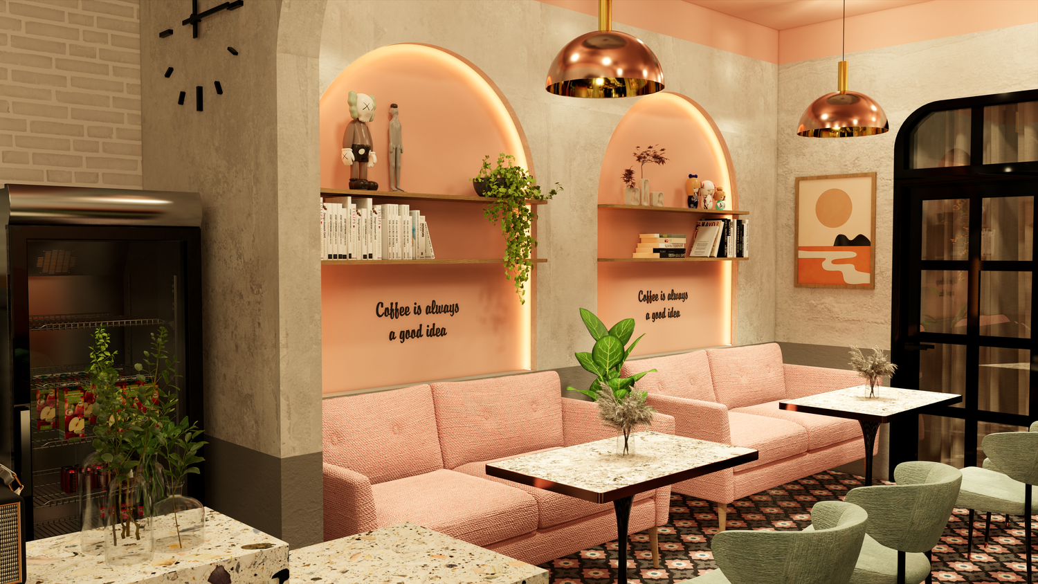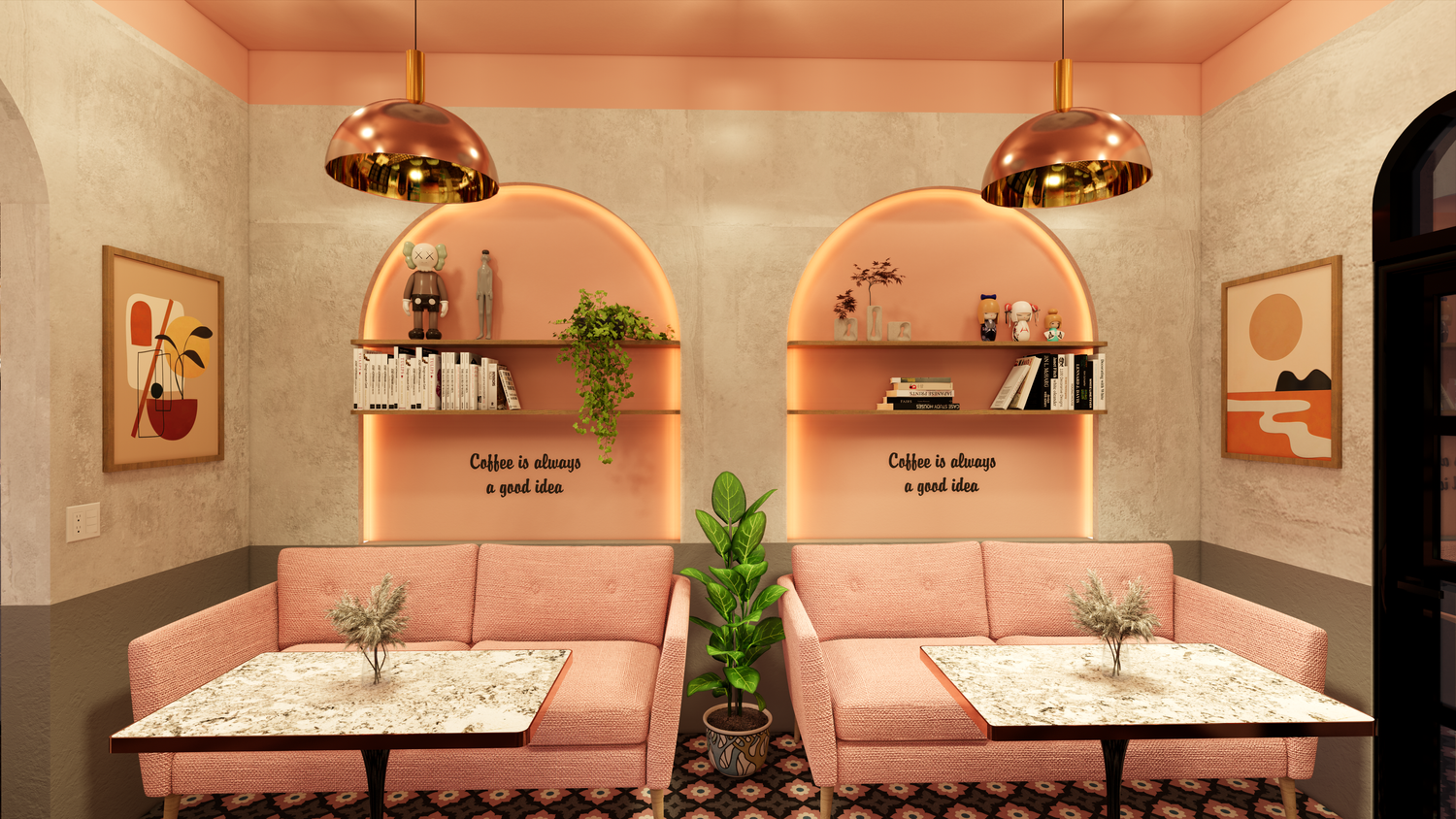 all times. In the decoration of the cafeteria have been added some personal styles that are consistent with the cafeteria, such as pictures with colors vibrant, shelves with ornaments and some figures eye-catching, which gives it a unique touch and the difference from the rest. A color palette was used where the whites, greens, browns, grays, and pinks are in tune to be able to handle the final unique visual auctions in each of its walls, which allows to have a family space and comfortable.