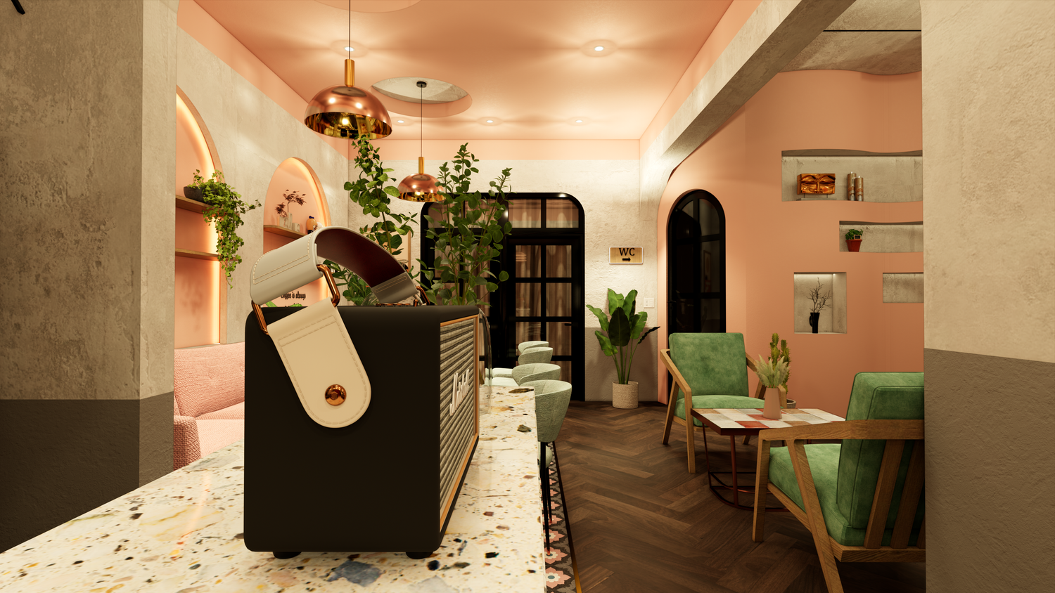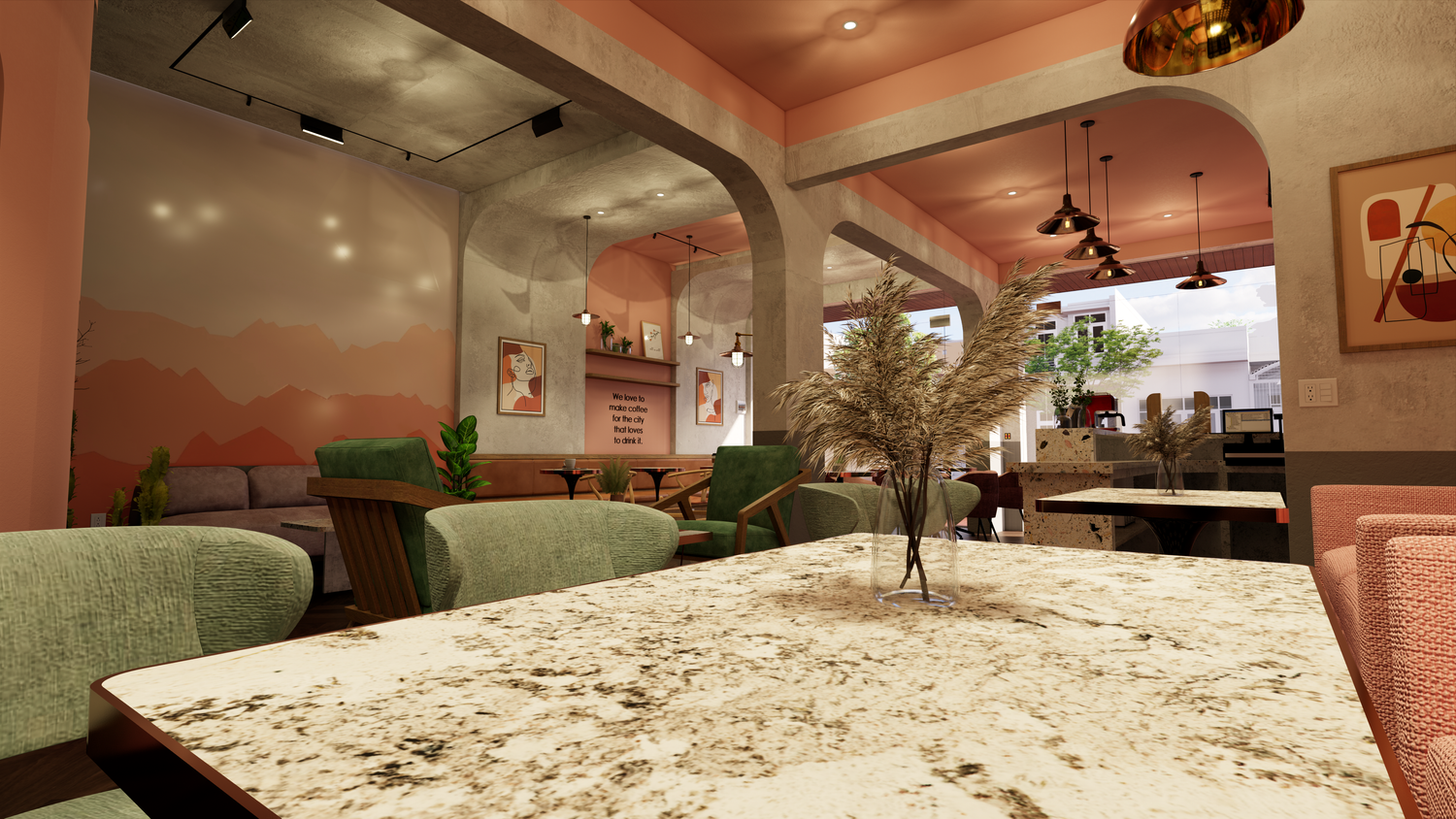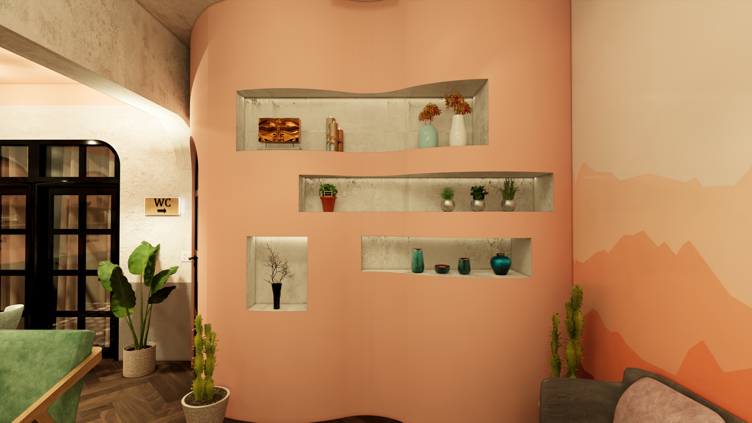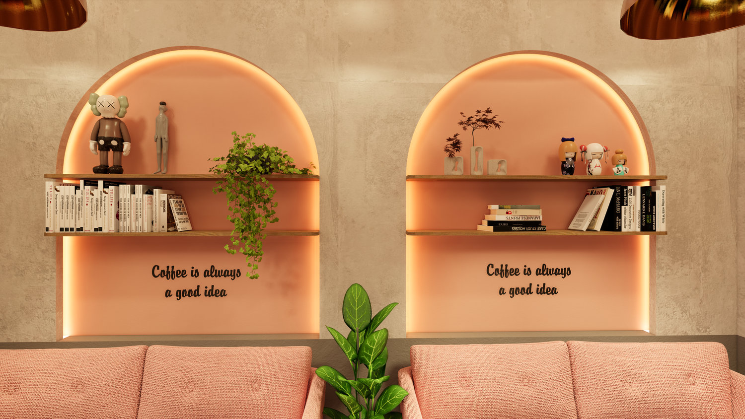 all times. In the decoration of the cafeteria have been added some personal styles that are consistent with the cafeteria, such as pictures with colors vibrant, shelves with ornaments and some figures eye-catching, which gives it a unique touch and the difference from the rest. A color palette was used where the whites, greens, browns, grays, and pinks are in tune to be able to handle the final unique visual auctions in each of its walls, which allows to have a family space and comfortable.