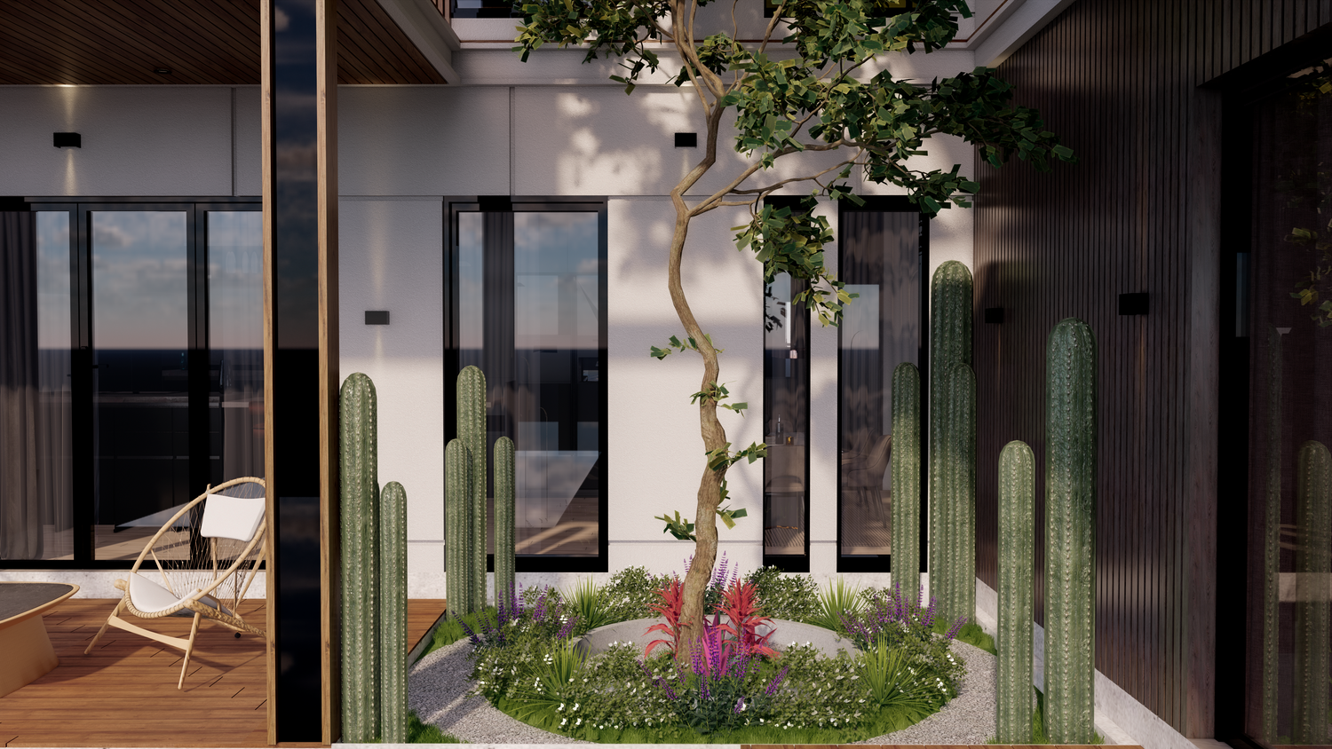 The objective of this project was to generate a weekend home that establishes an intimate relationship with nature, but maintains a good connection with the outside, a house that combines these two complexities and proposes an alternative to everyday life. A strategic location on the lot is chosen, which allows taking advantage of visuals and generating a harmonious relationship between the height of the house and the surrounding elevations. In addition, different scales of the inside-outside relationship are achieved with the location, which will allow the program to be distributed according to the spatial needs established for each space with the outside.