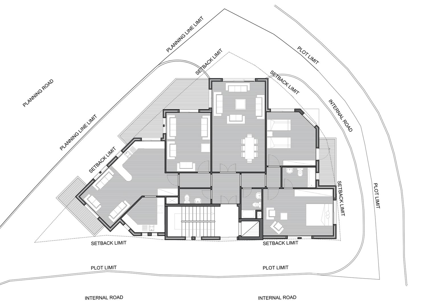 The unique characteristic of this site is its northern view.The building responds to this situation with its complex geometry: