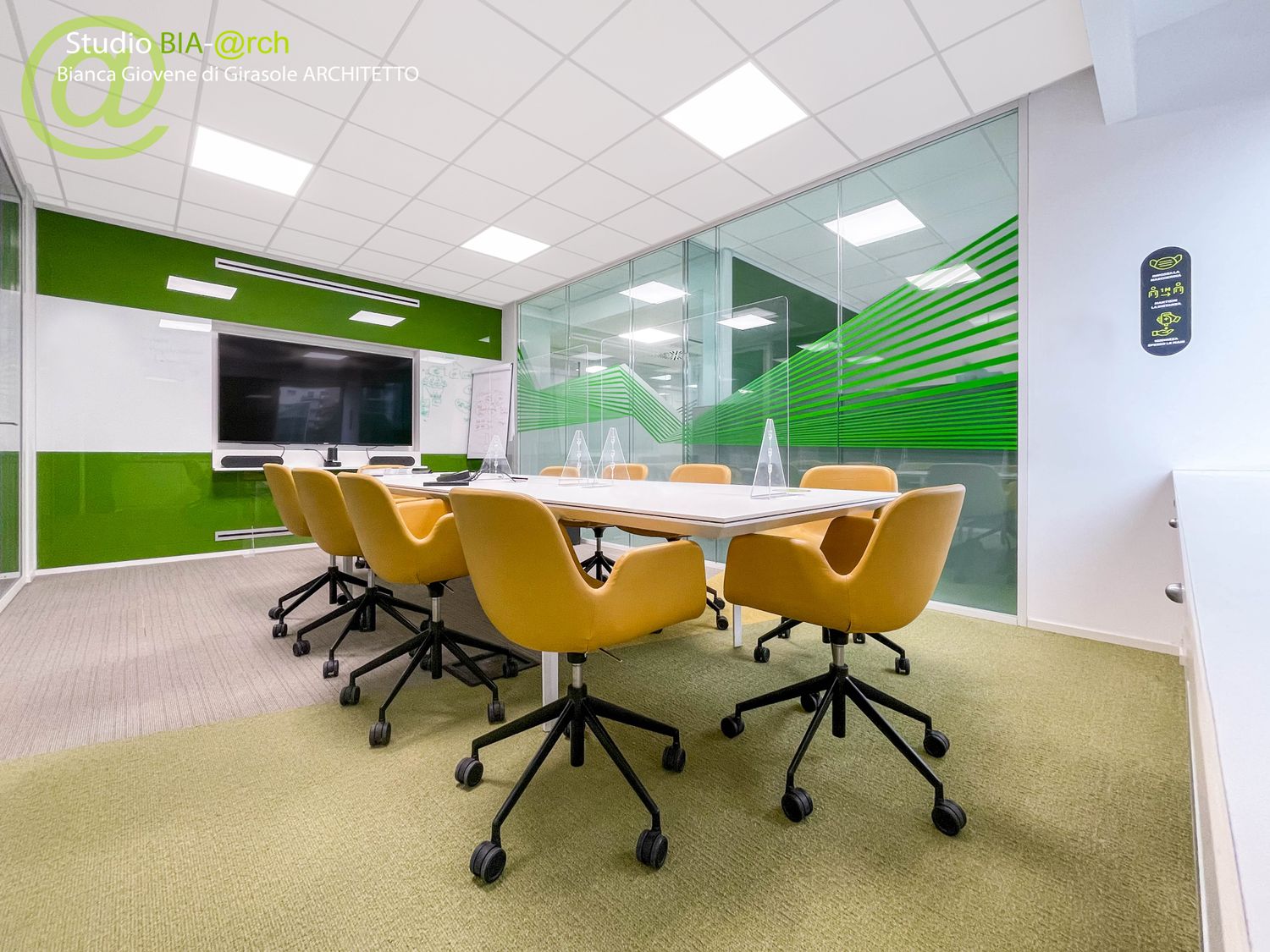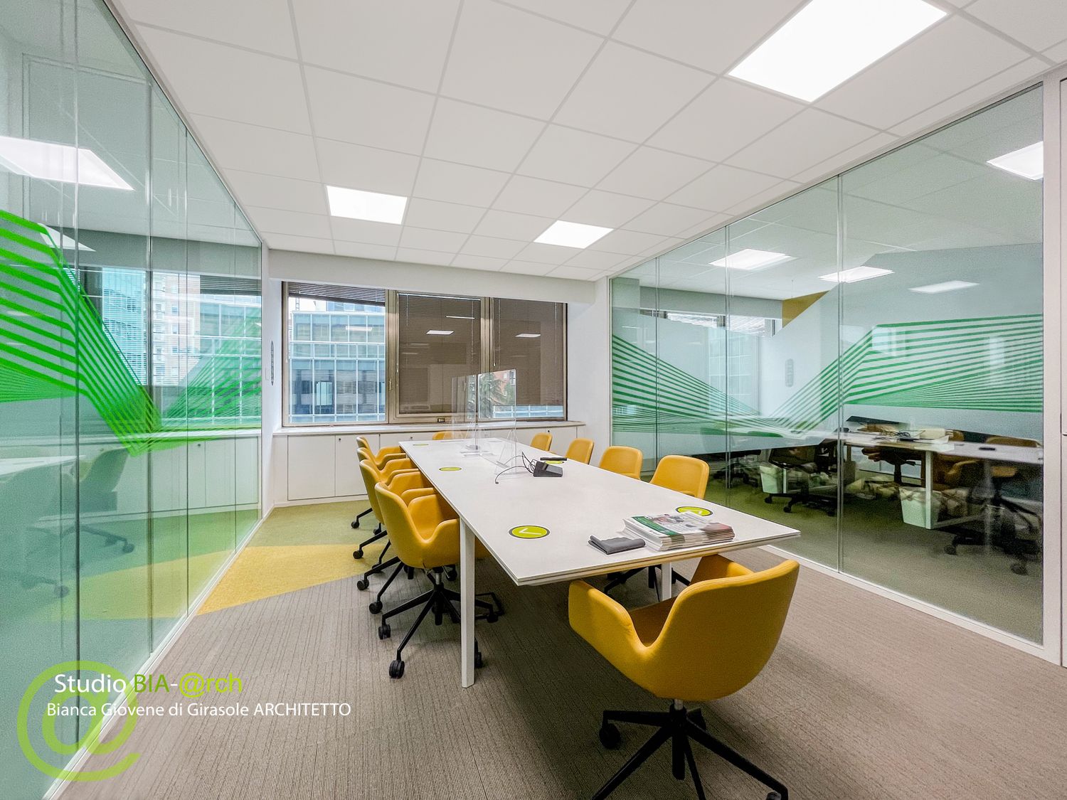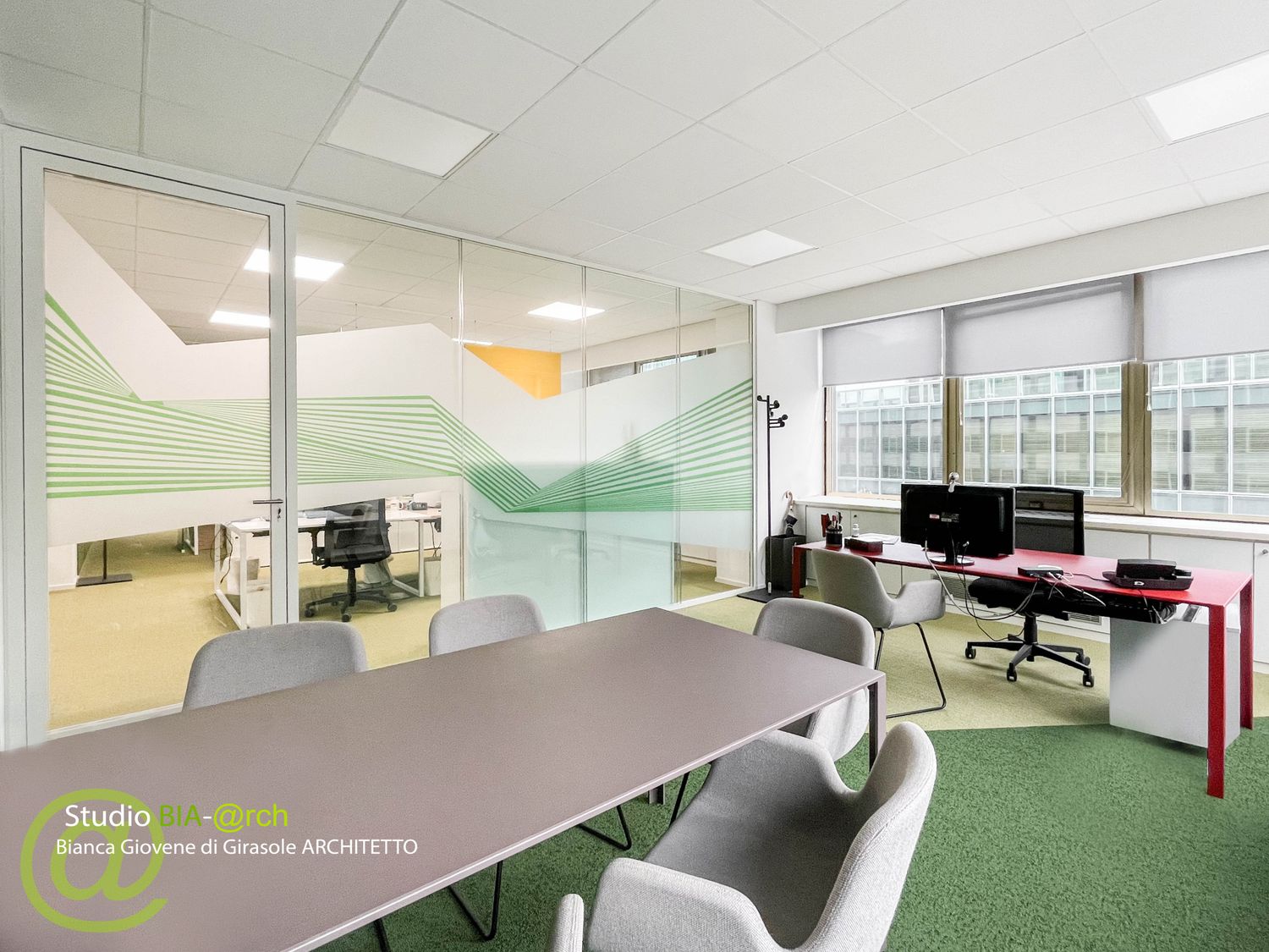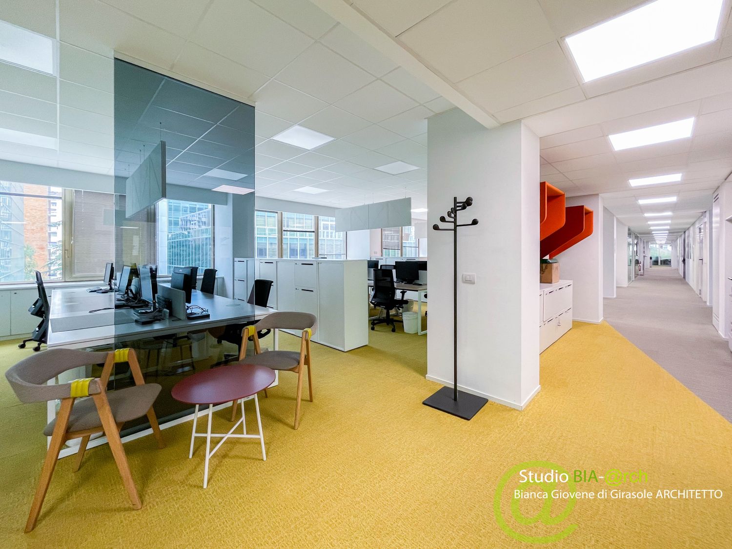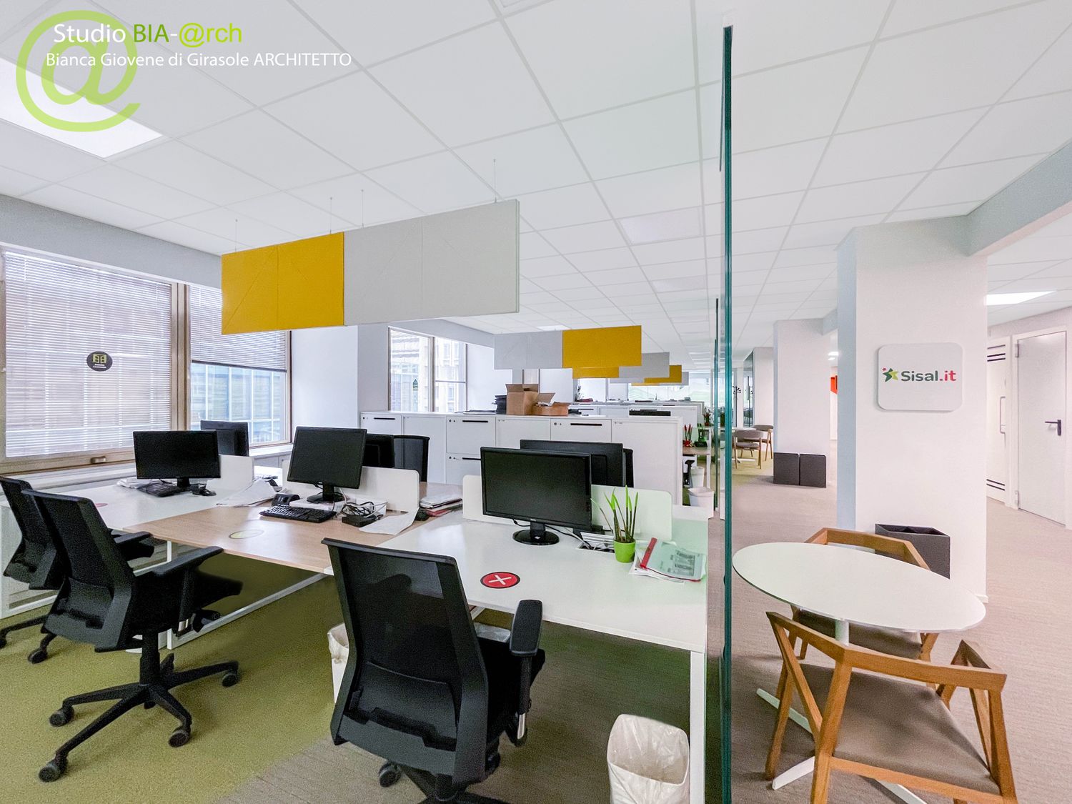 Sono stati allestiti gli spazi dal punto di vista degli interni, nelle scelte di materiali e finiture e nella definizione del layout unificando alcune tipologie di lavoro per spazi collaborativi e di smart working.