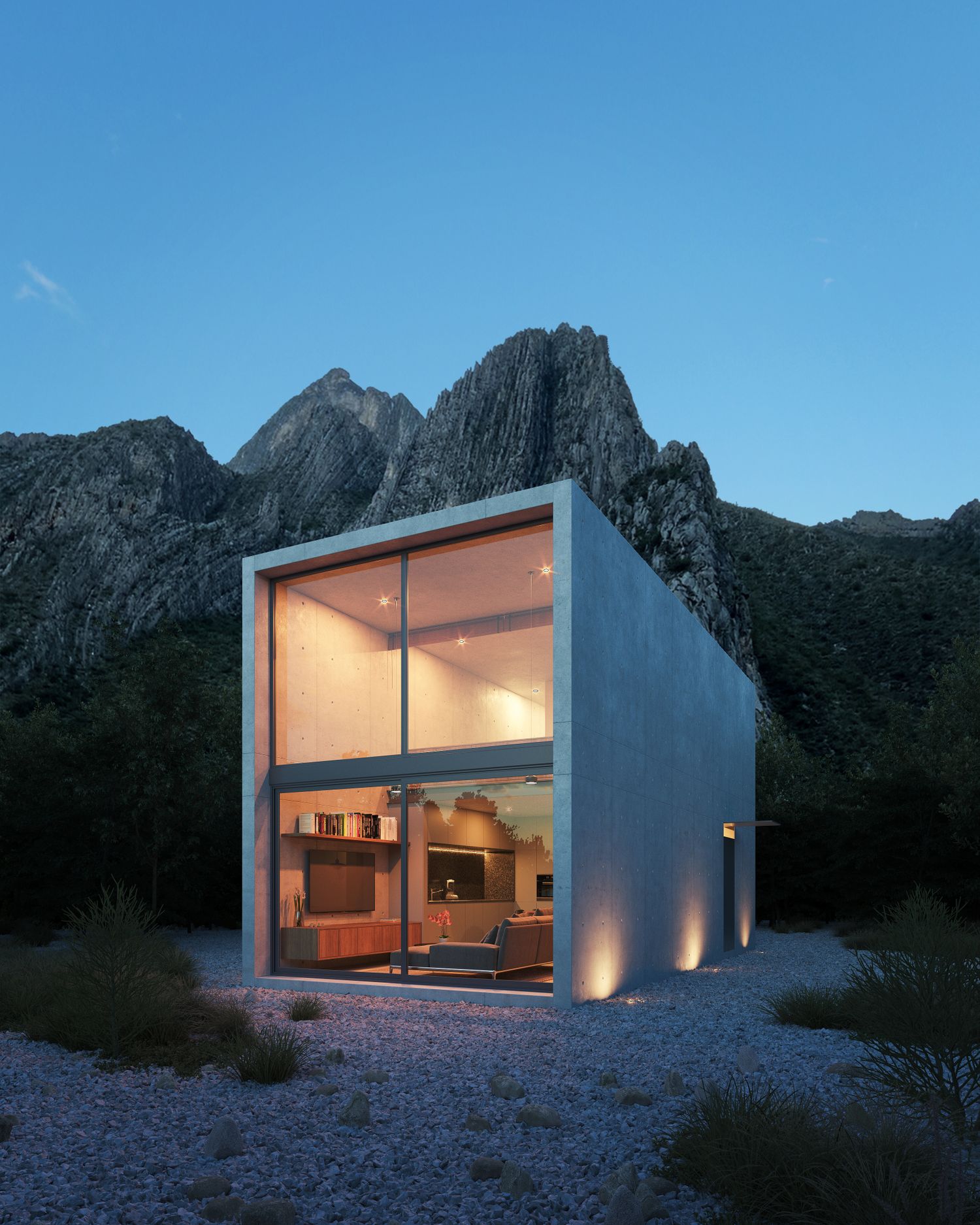 The project was born from the idea of a minimalist house. The client wanted to build a Tiny Home on a huge plot of land (32,300 ft2) on the Cañón de La Huasteca, which is a beautiful mountain range located just outside of the city of Monterrey, Mexico. This beautiful landscape provided by the mountains was of course, the protagonist of this project.