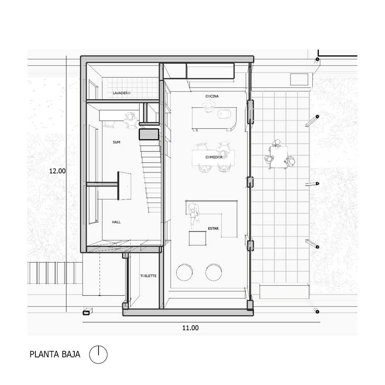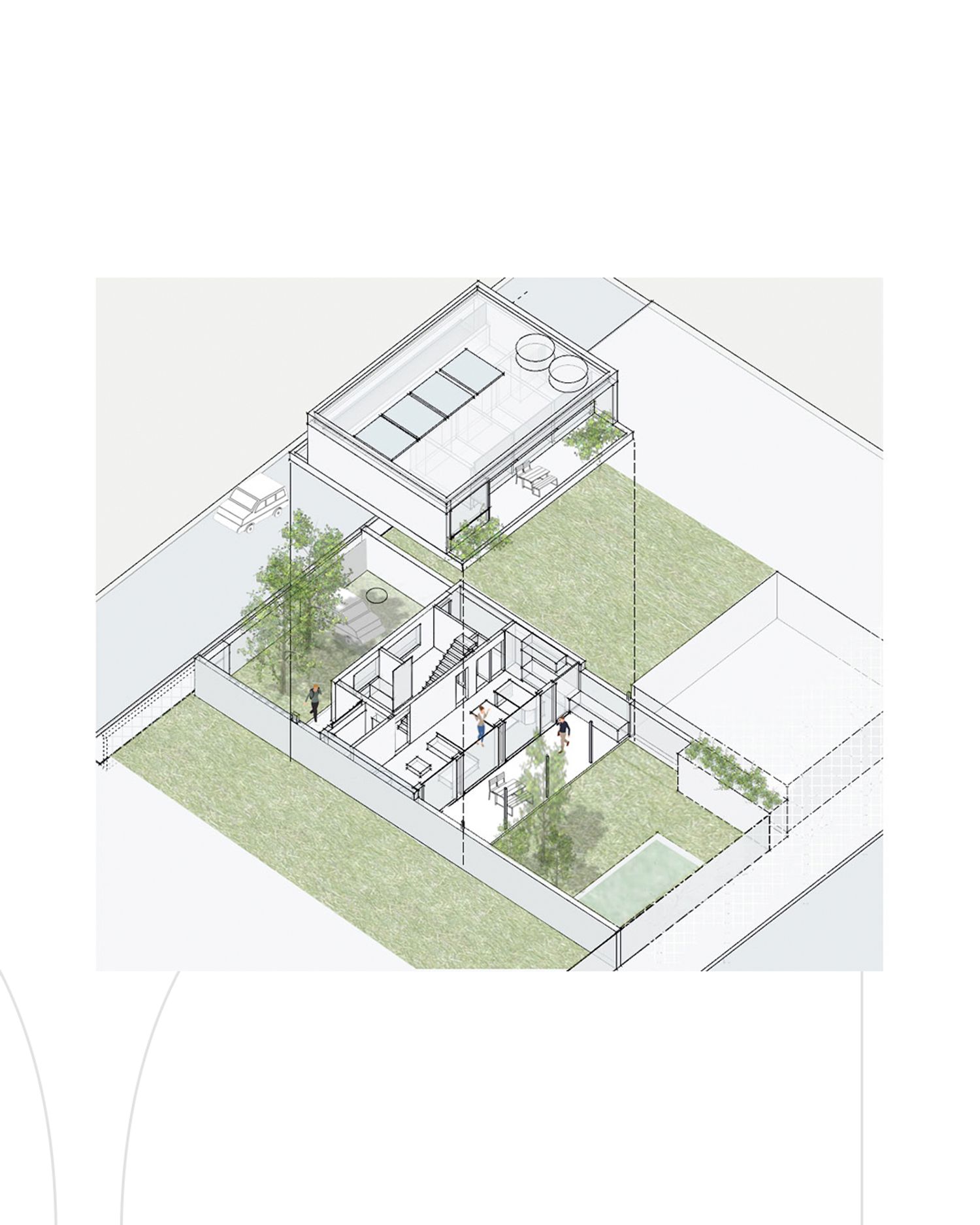 This project was design for a family of five people. They wanted a two store house with an open common area and 3 bedrooms that could become 4 bedrooms in the future. They were very interested in sustainability and passive architecture.