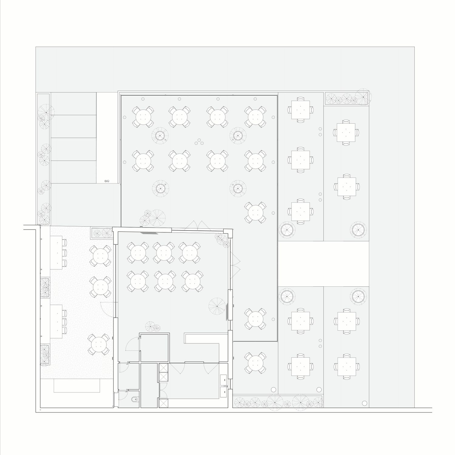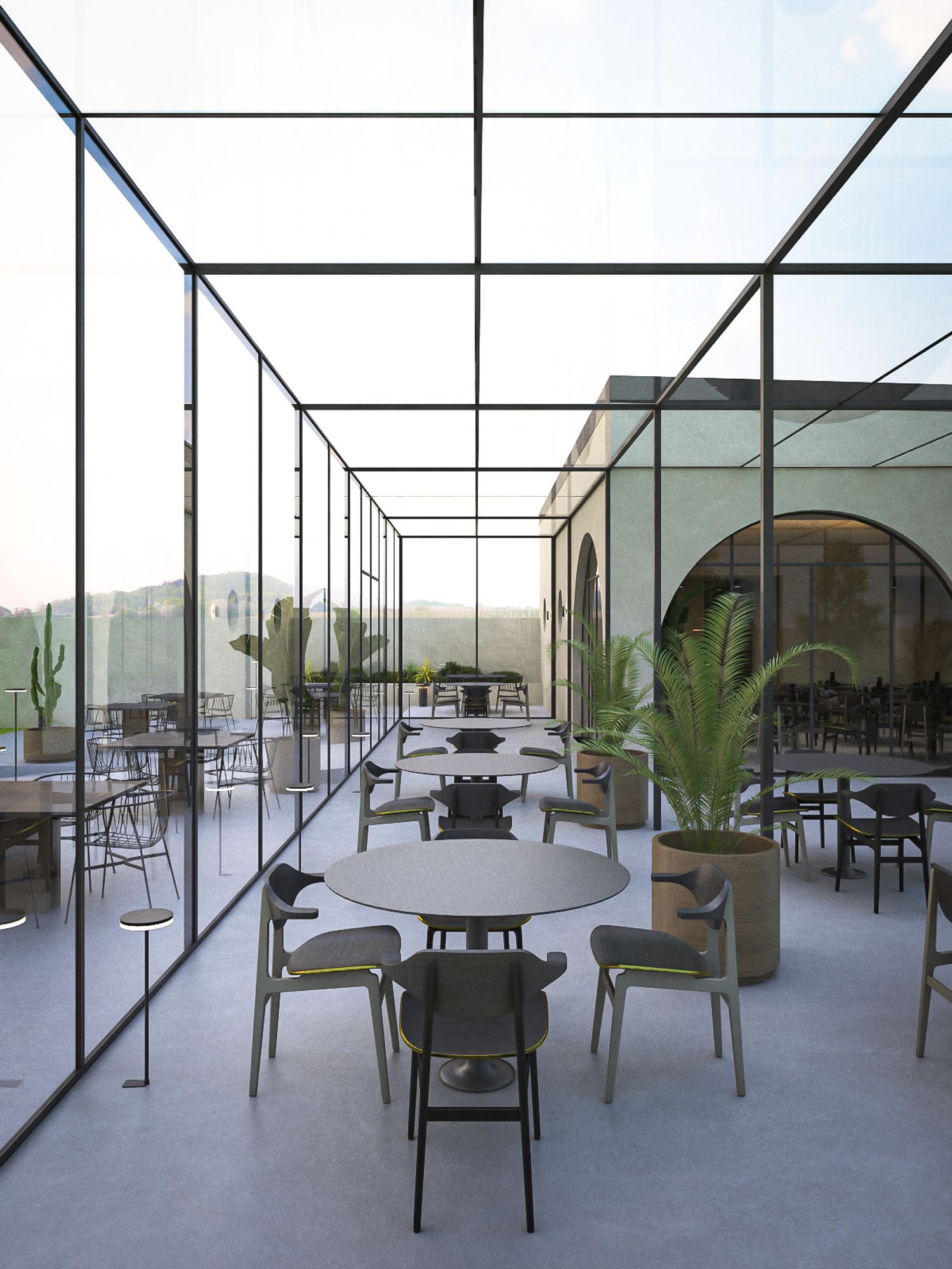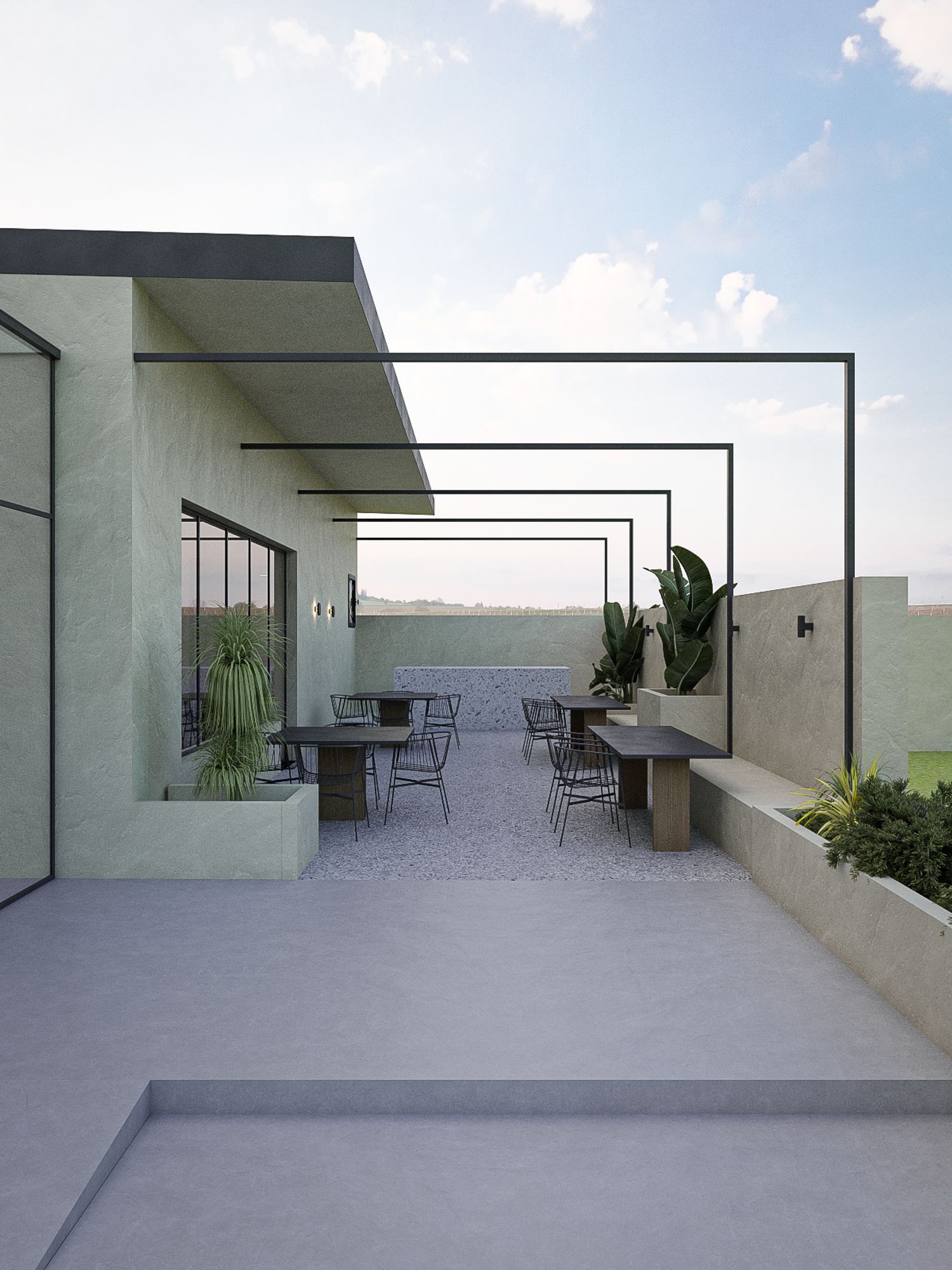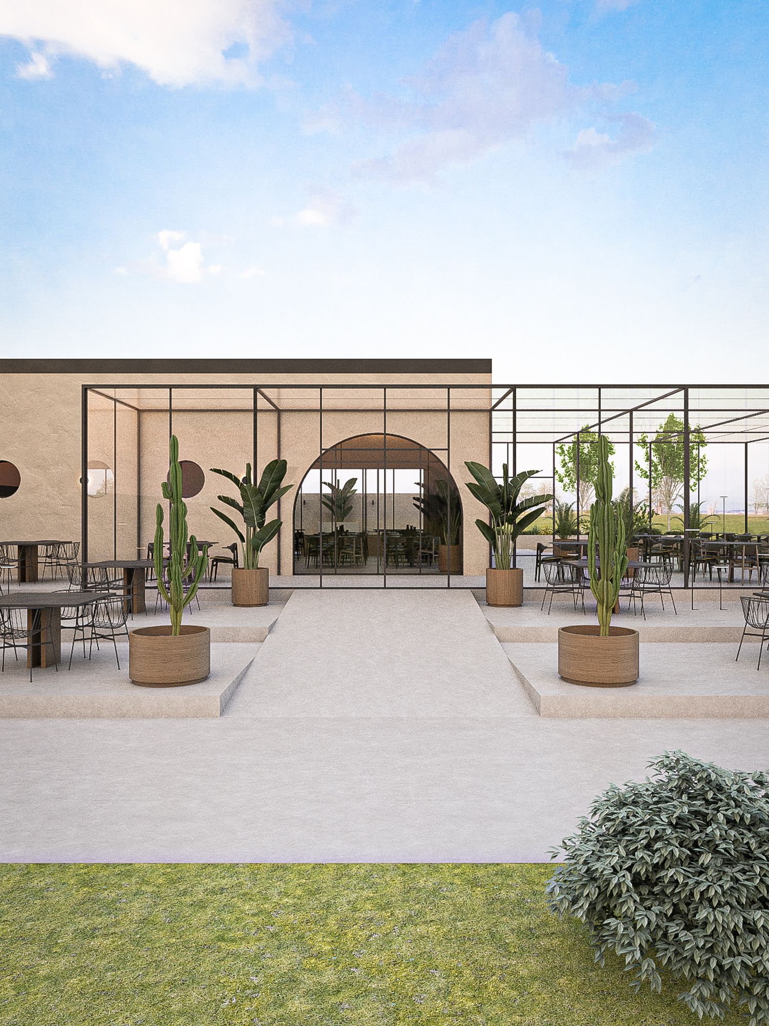 Si è tenuto conto della vocazione agricola del contesto pertanto sono sono state integrate zone dedicate alla coltivazione e zone dedicate allo sport, coesistendo all'interno della stessa area. Il punto ristoro nasce a partire da un rudere pre-esistente.