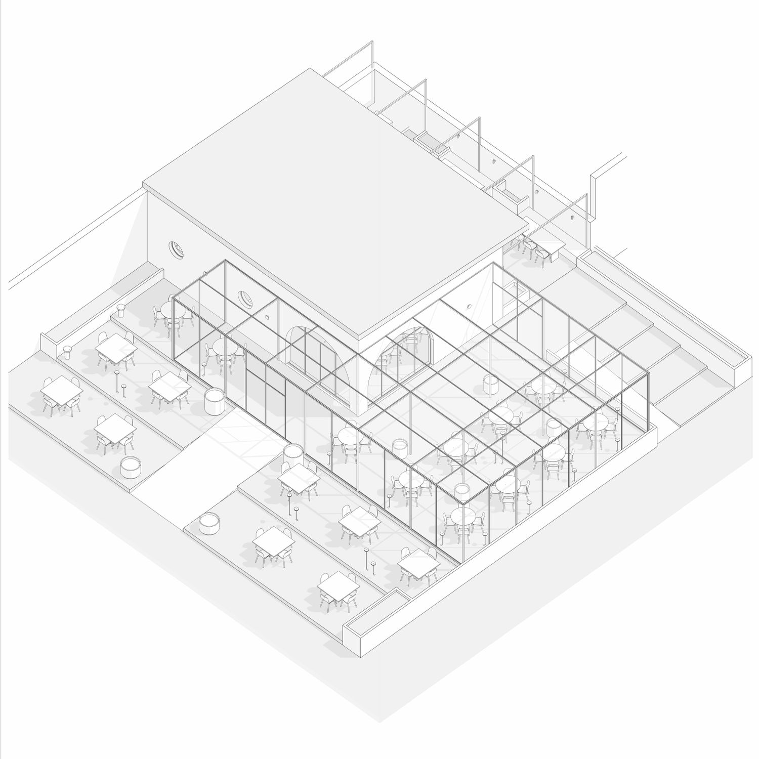 Proposta progettuale per un centro sportivo con punto ristoro e alloggi temporanei.