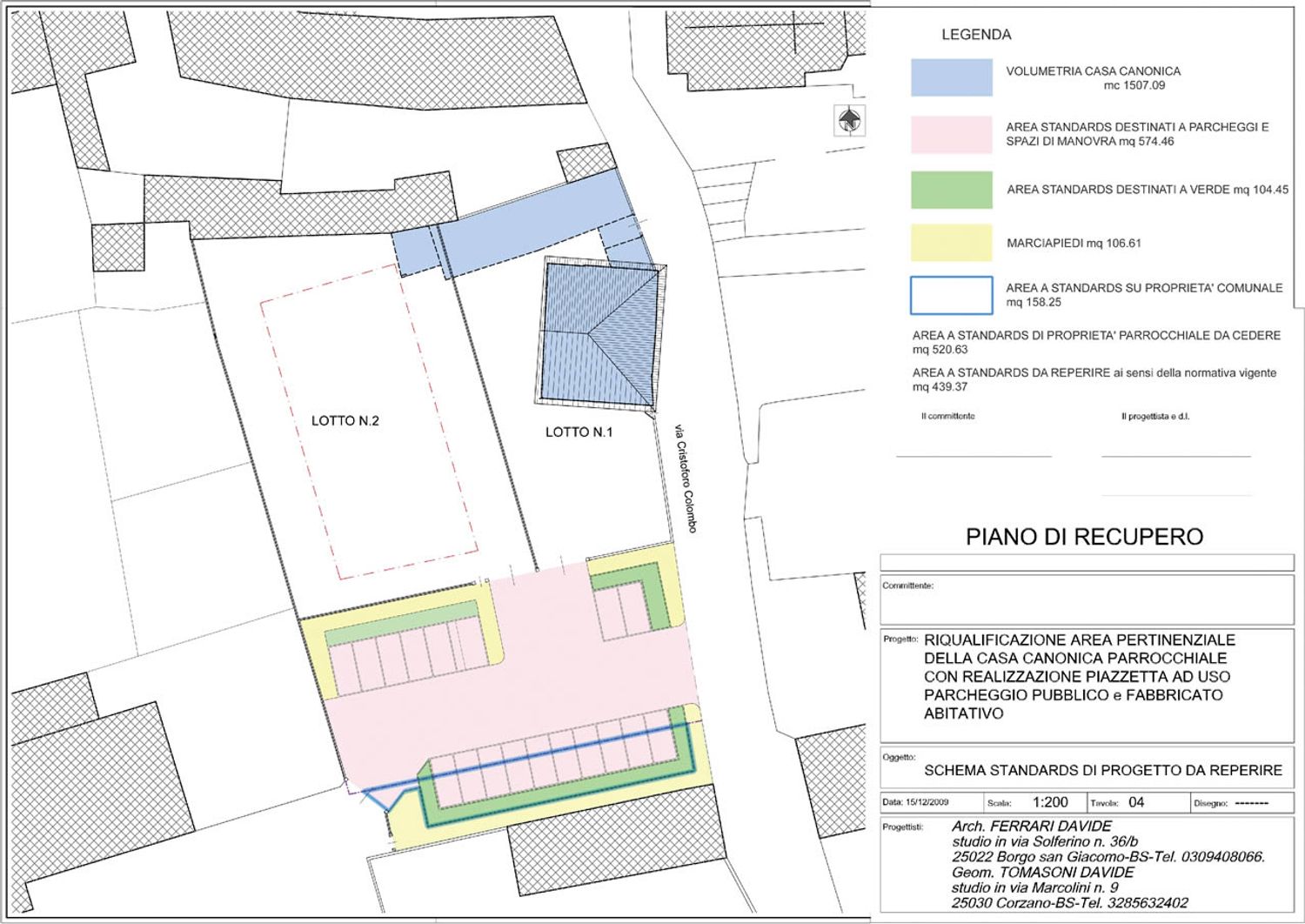 Progetto per il recupero funzionale dell’area pertinenziale della casa canonica parrocchiale con individuazione di un’area edificabile con cessione al comune di area da destinare a piazza-parcheggio con la funzione di riqualificazione funzionale di un sito pressoché inutilizzato.