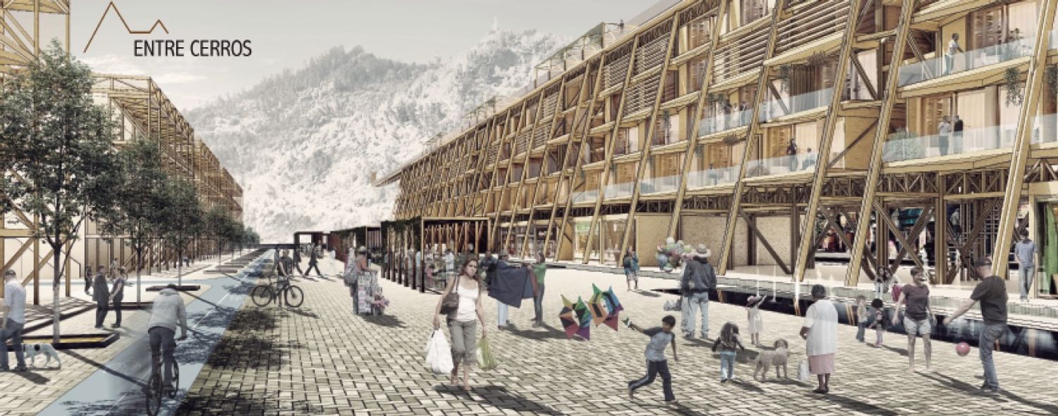 The construction of a neighborhood: housing complex of high density built in wood.