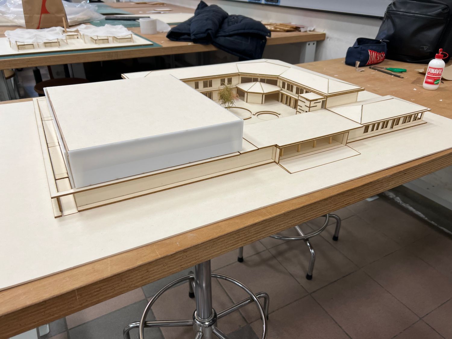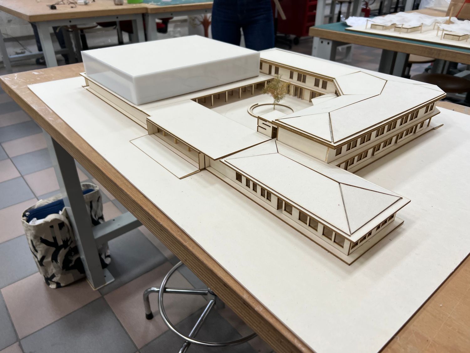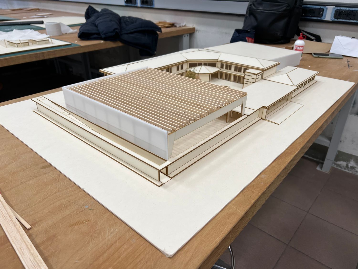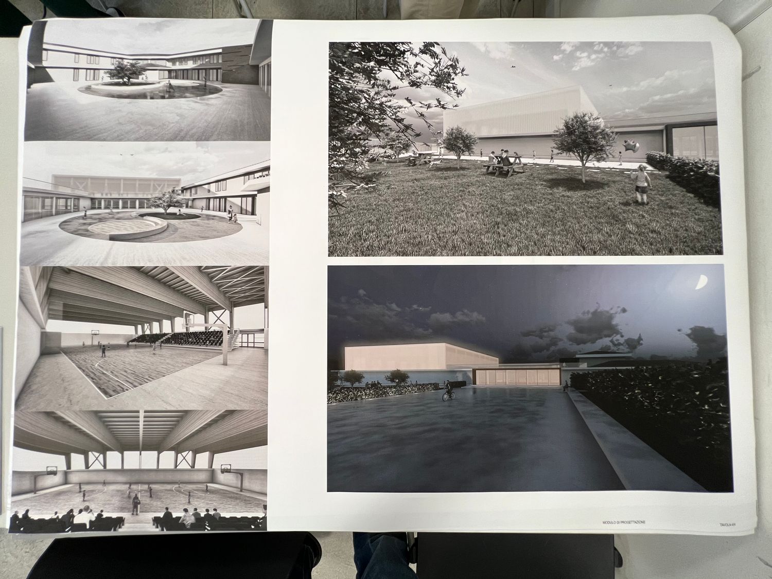 Il progetto prevedeva la realizzazione di una palestra all’interno di una scuola elementare a Grosseto che fosse servita da altre funzioni quali bar, ristorante, spogliatoi, biglietteria e spazi esterni. Per farlo è stato pensato un nuovo impianto in grado di comunicare con la parte esistente attraverso un corte interna e che riuscisse, attraverso il rivestimento in policarbonato della palestra (in grado di illuminarsi di notte) a relazionarmi anche con la città. Un progetto quindi, pensato non solo per la scuola e per i bambini, ma anche per le persone del quartiere.