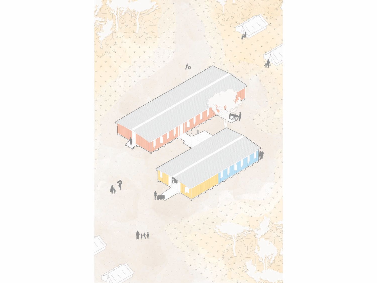 Una struttura camaleontica fatta di moduli indipendenti può essere la risposta a questa sfida in continua evoluzione, quindi che un edificio progettato avendo la crisi umanitaria in Sud Sudan in mente potrebbe essere riadattato ovunque è necessario. Un approccio modulare è anche conveniente in termini di quanto facilmente e rapidamente l’edificio possa essere eretto, risparmiando il tempo e le competenze richieste per la costruzione.