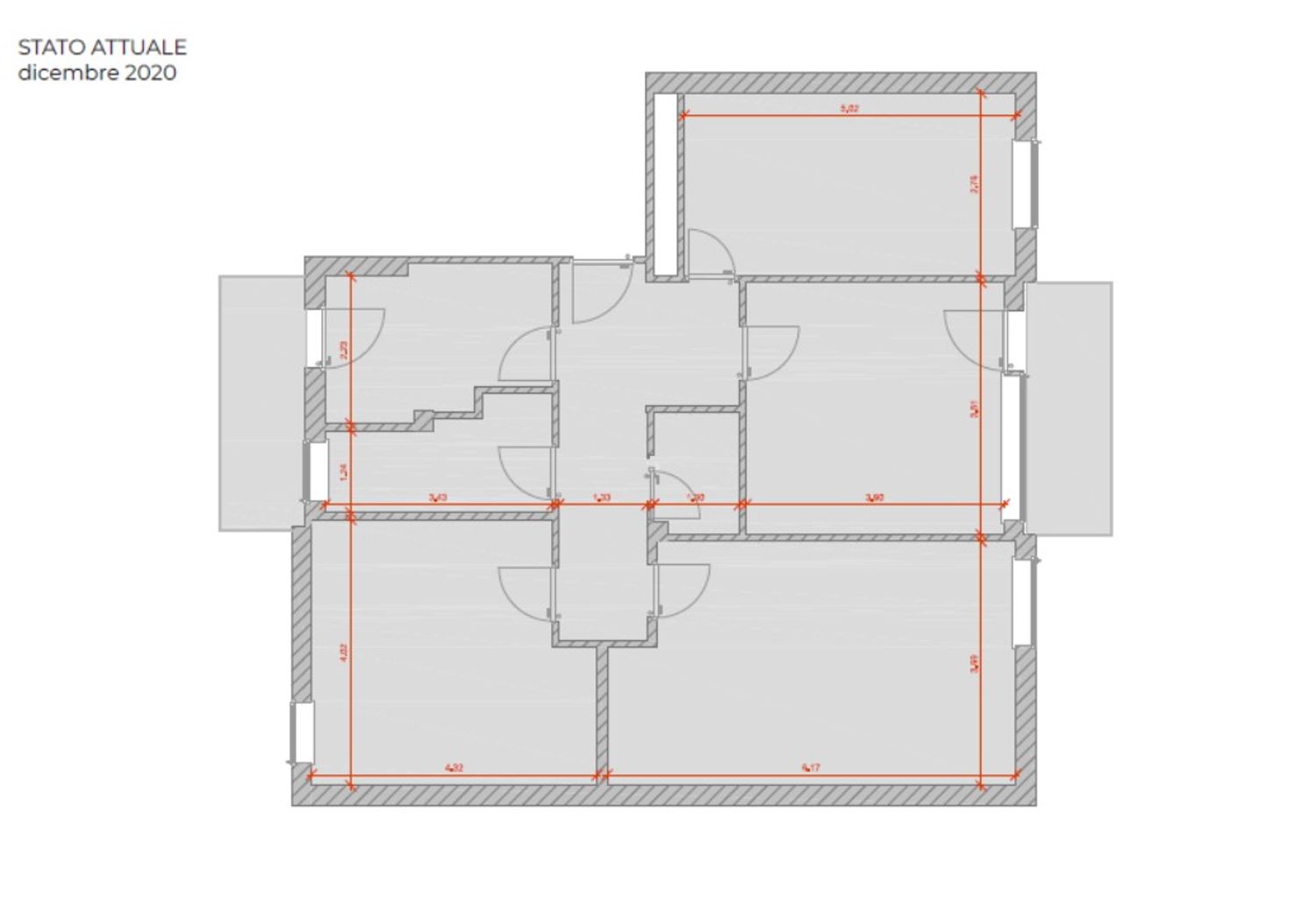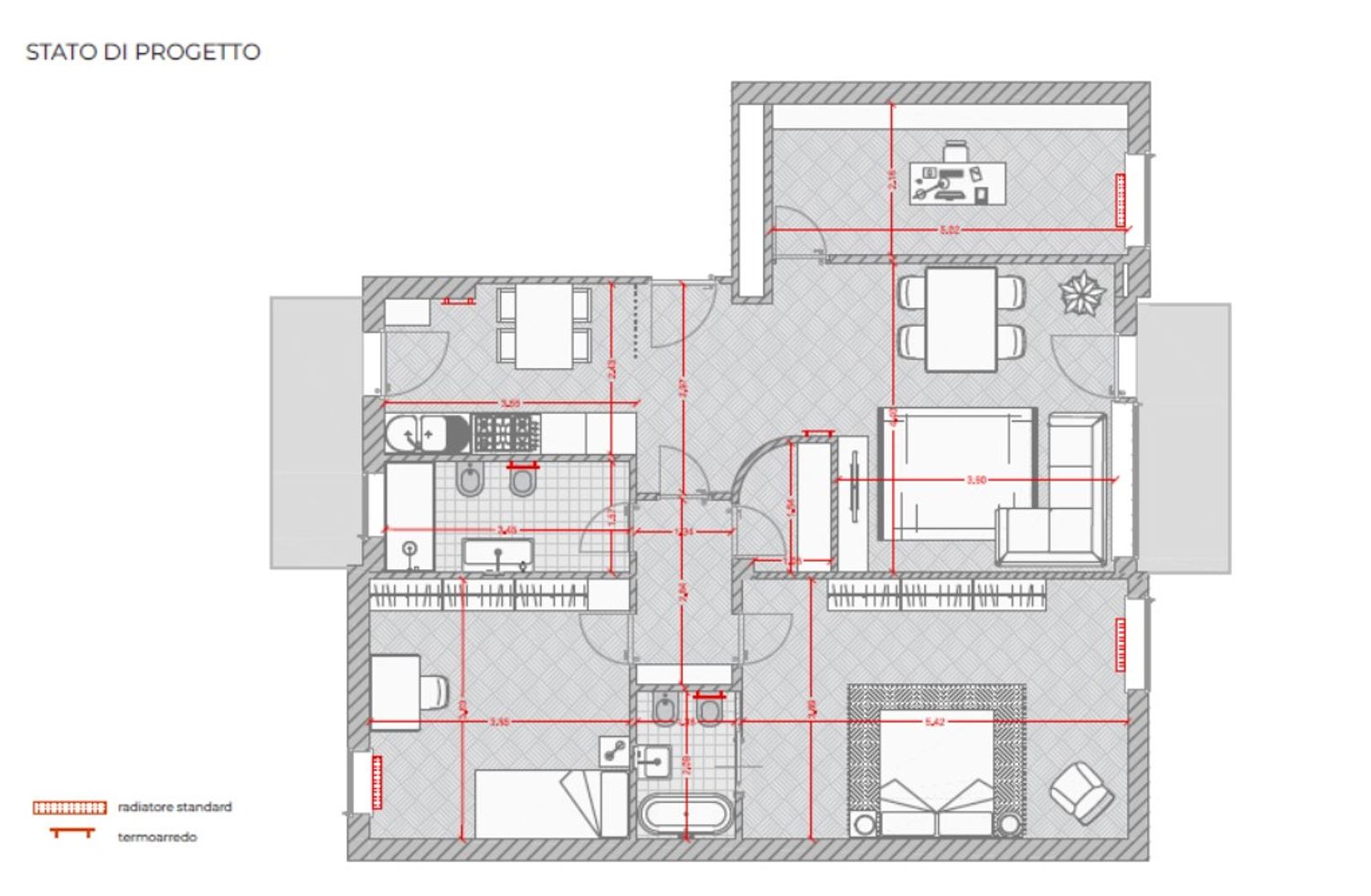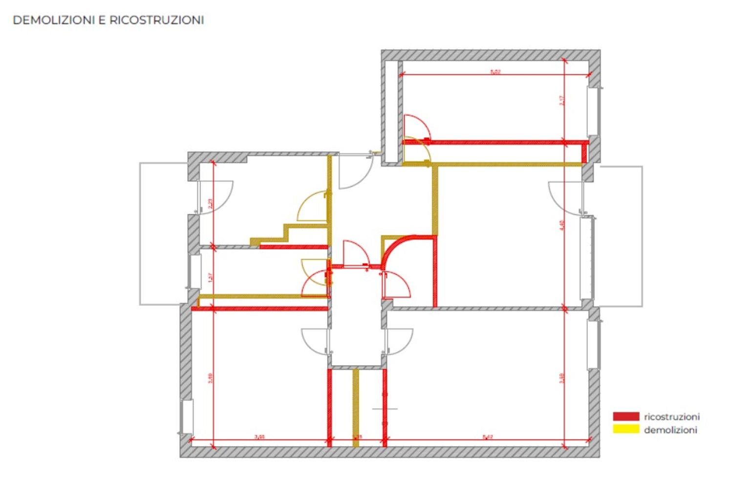Intervento di restyling di un appartamento in cui, mediante inserimento di nuovi tramezzi, è stato ricavato un secondo bagno, è stato realizzato un ambiente di open space e le tramezzature sono state regolarizzate per recuperare spazi.