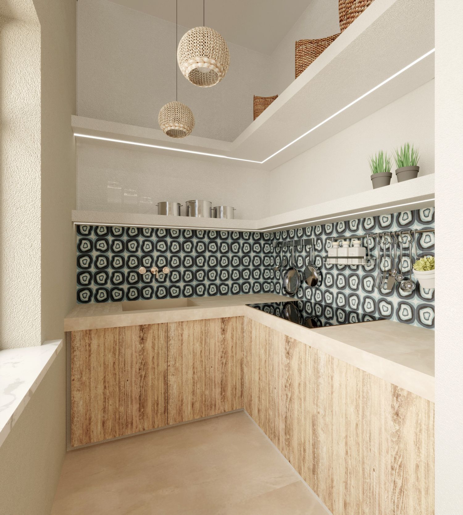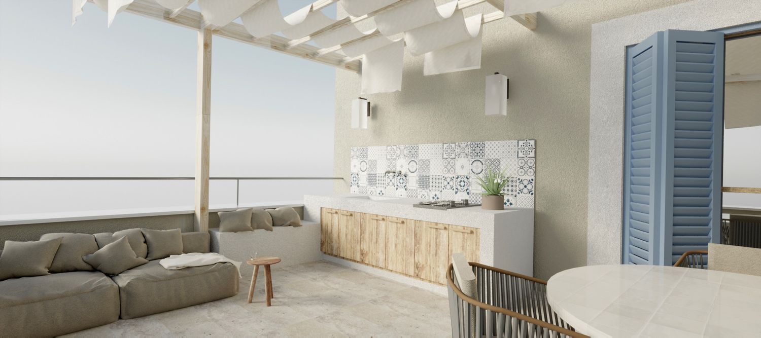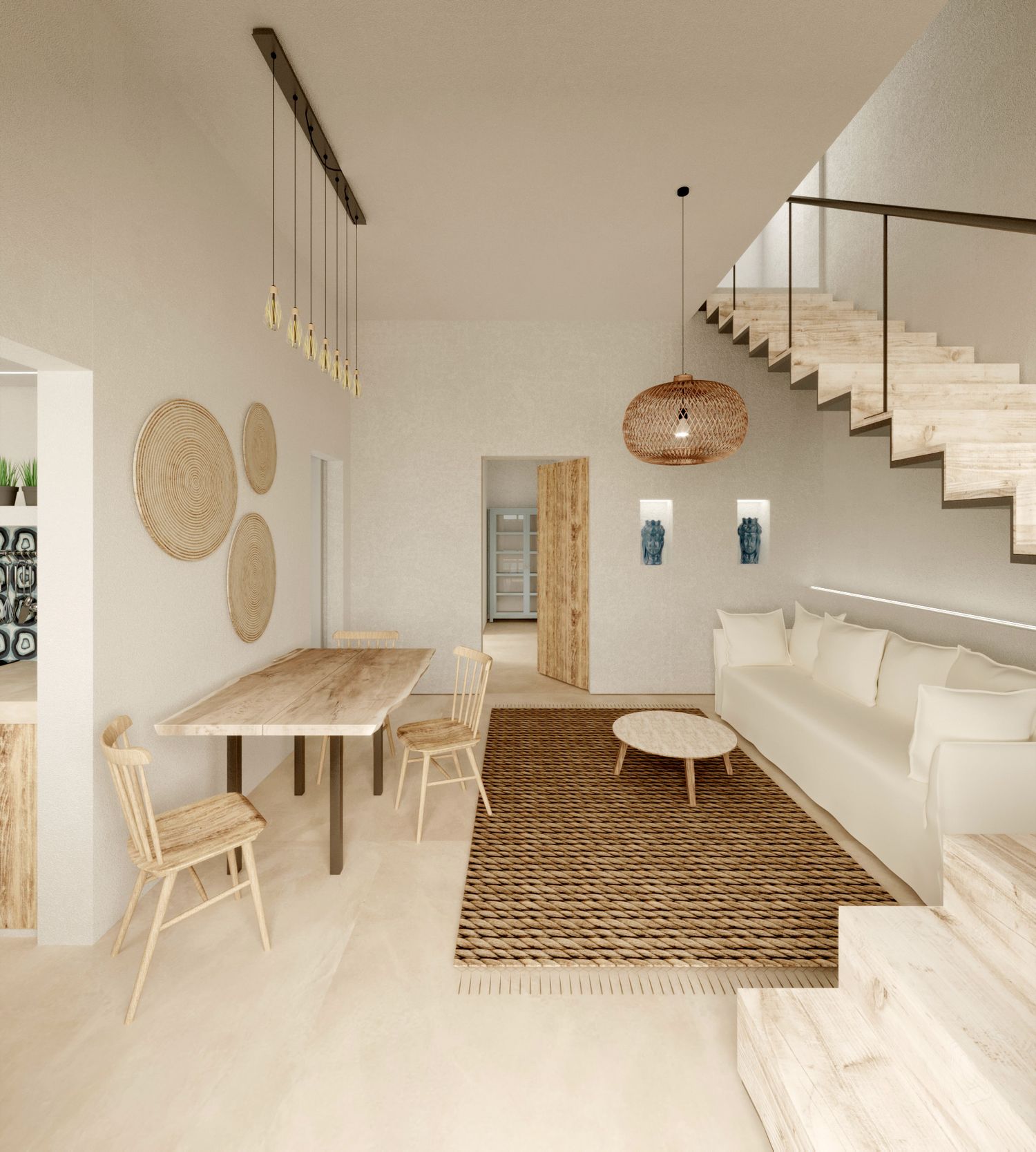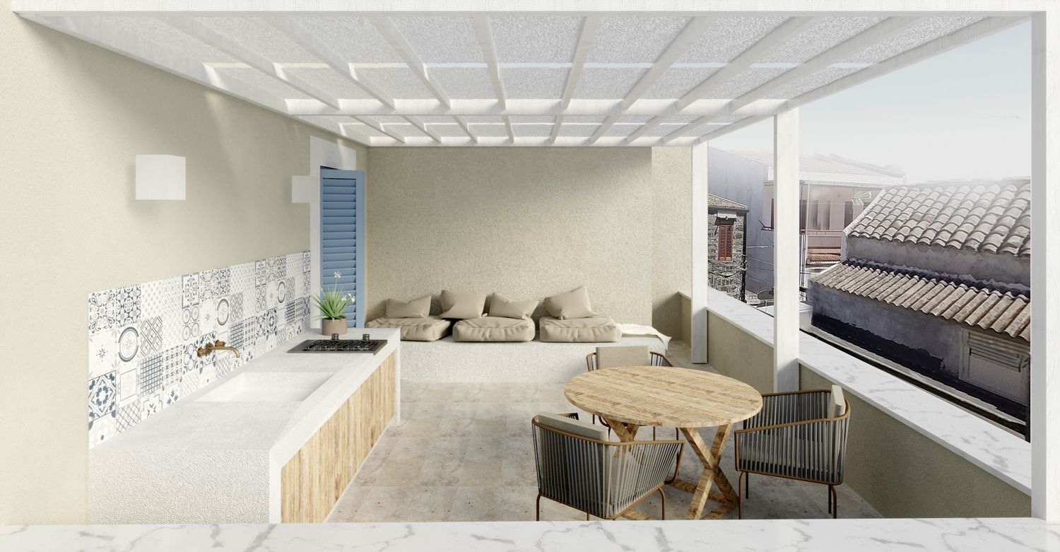 La parola d'ordine di questo progetto è "mediterranean style". Questa la richiesta del committente, che voleva fare i lavori di efficientamento energetico con il superbonus 110 e con l'occasione rimodernare gli spazi della casa. Sono stati sostituiti gli impianti, uno strato isolante è stato inserito in tutte le facciate e nei solai esterni, gli infissi vecchi sono stati tutti sostituiti con infissi a taglio termico. Per gli interni la proposta si è basata su una sintesi tutta mediterranea tra colori tenui e punte di azzurro, essenze, tessuti, che si sposassero con le vibes isolane ma anche e soprattutto con le esigenze di una clientela moderna e dinamica. Per dare respiro alla zona giorno è stato rimosso il classico sistema di scala "tra due muri" in favore di una più moderna soluzione in acciaio piegato e rivestimento in tinta. La cucina è stata ragionata per essere prima di tutto contenitiva e sono state fatte più ipotesi, mentre la terrazza risulta un vero e proprio fiore all'occhiello, con cucina all'aperto, zona pranzo e soggiorno con vista sul paese.