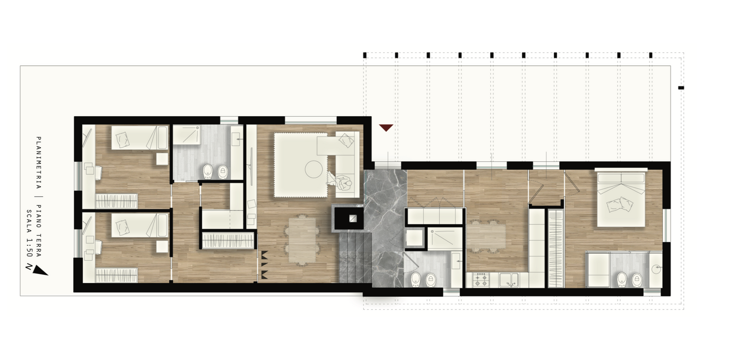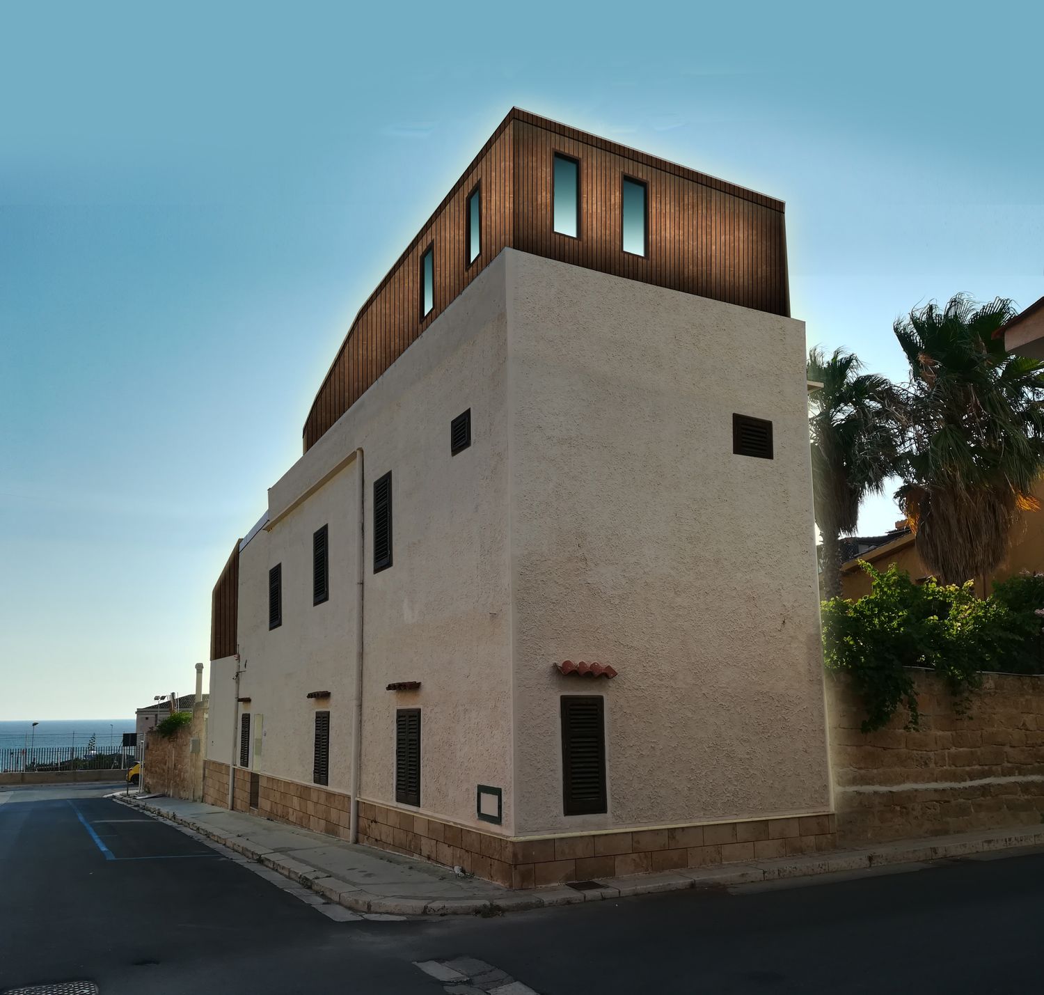 Progetto di ristrutturazione di una casa vicino al mare in provincia di Palermo. Il committente è un fotografo batterista, che passa molto tempo a giocare alla playstation e guardare film. Nella ridistribuzione degli spazi interni è stato dato spazio ad ogni hobby e interesse del committente, e dallo studio di fattibilità è emerso che si poteva aggiungere un livello al fabbricato, pensato come un volume ligneo che richiamasse le linee aero e idrodinamiche delle imbarcazioni.