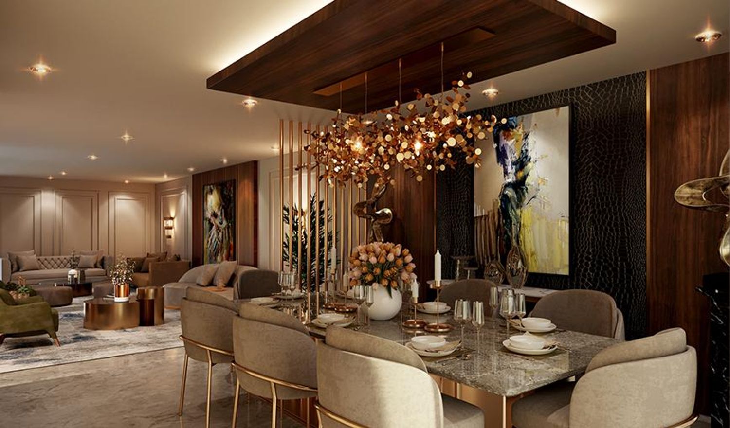 The furniture choice was excellent because it shows natural texture which is full of natural and unsophisticated atmosphere; Metal plating (golden) on steel pipes and on velvet seats, elegant lines, with a sense of the time, highlighting the texture contrast effect; High-grade velvet furniture appears to have elegant style, deep charm, and rich oriental emotional appeal.
