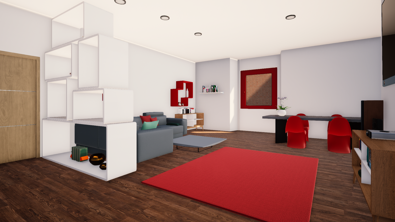 Red Vibe is an attempt to stimulate our visual perception in everyday life, red becomes an element of fusion with the environment through references in furniture details