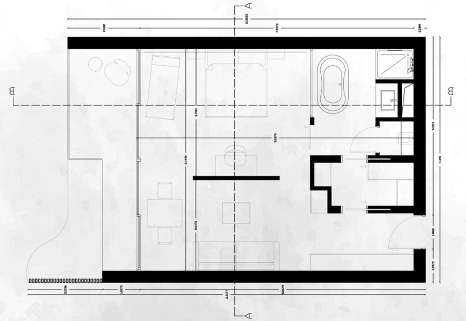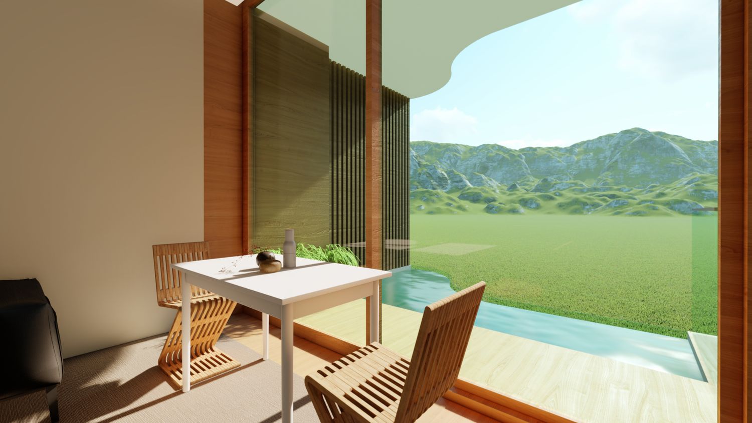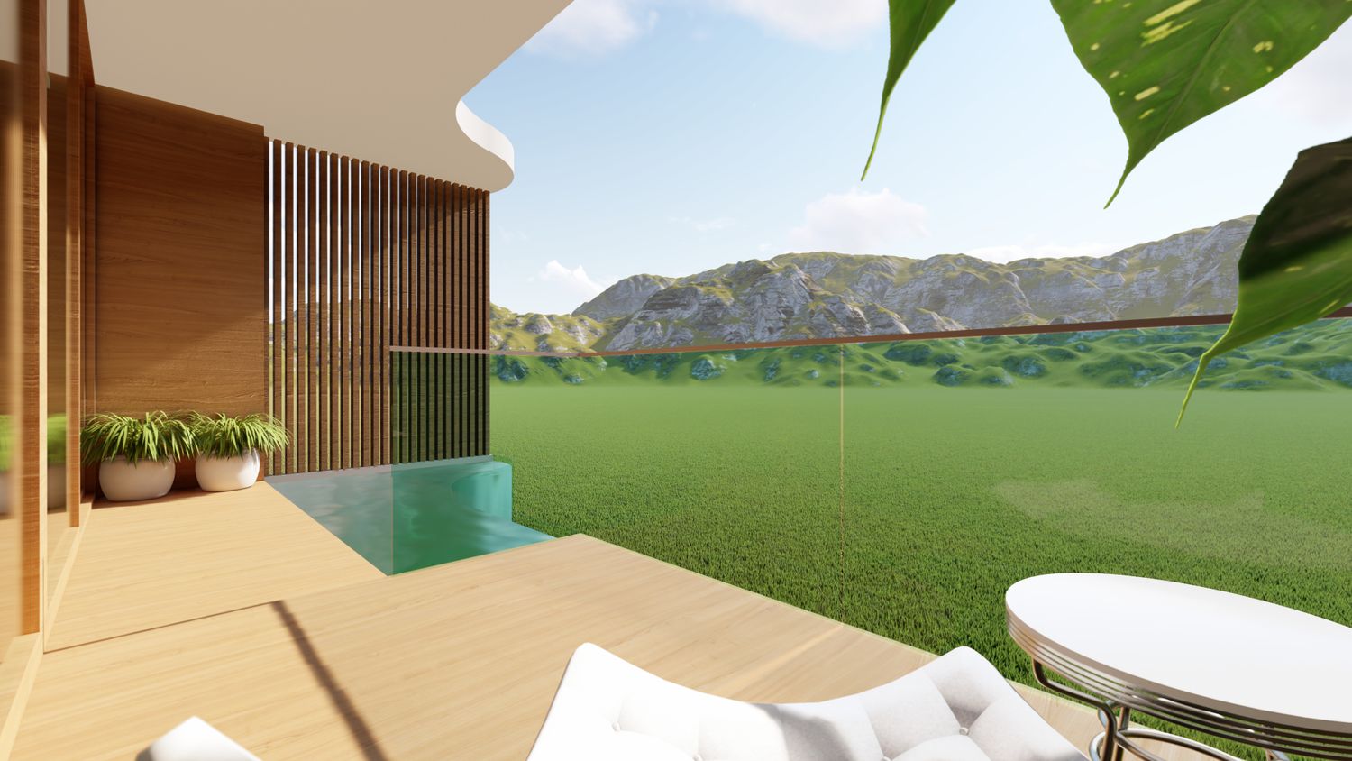 In shaping this opulent 5-star hotel suite, the concept revolves around creating a space that seamlessly integrates various activities while preserving a serene ambiance. The design features a unified area where guests can engage in diverse pursuits, feeling both connected and secluded at the same time. The living space, dining area, and bedroom converge, with the bed offering a tranquil view of the pool from the balcony. Expansive glass windows amplify the sense of openness and tranquility. The exquisite bathroom facilitates a seamless connection with the rest of the room, providing a unique shower experience while maintaining a connection to the overall ambiance. The bathroom effortlessly transitions into the dressing area, accessible through an alternative entrance. A pivotal TV unit serves both the living space and the bed, complementing the intimate coffee corner. This architectural marvel is crafted to deliver not only comfort but also a comprehensive experience where each element contributes harmoniously to a feeling of well-being and tranquility