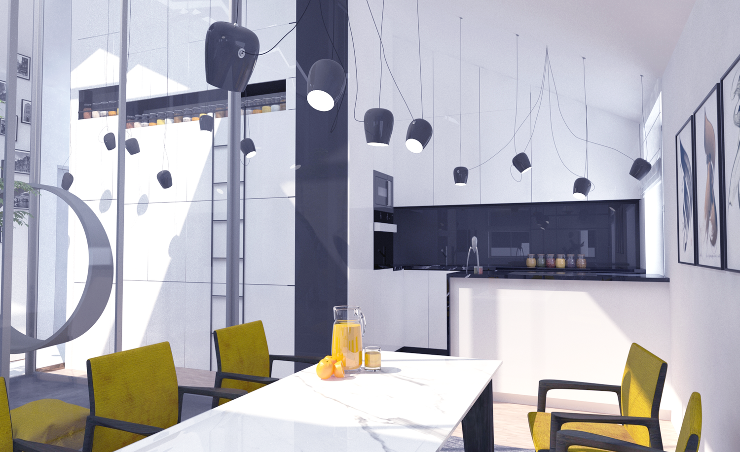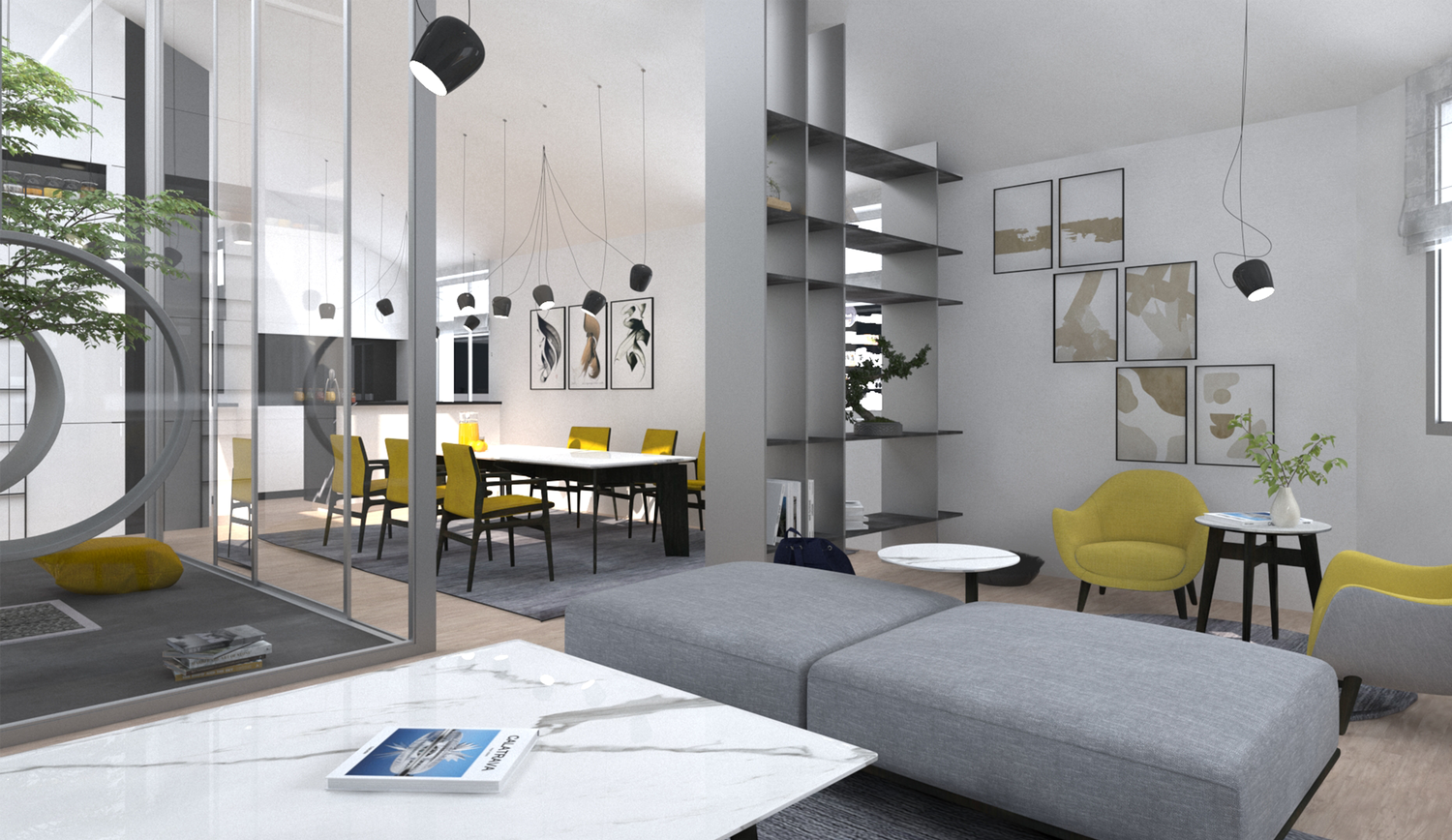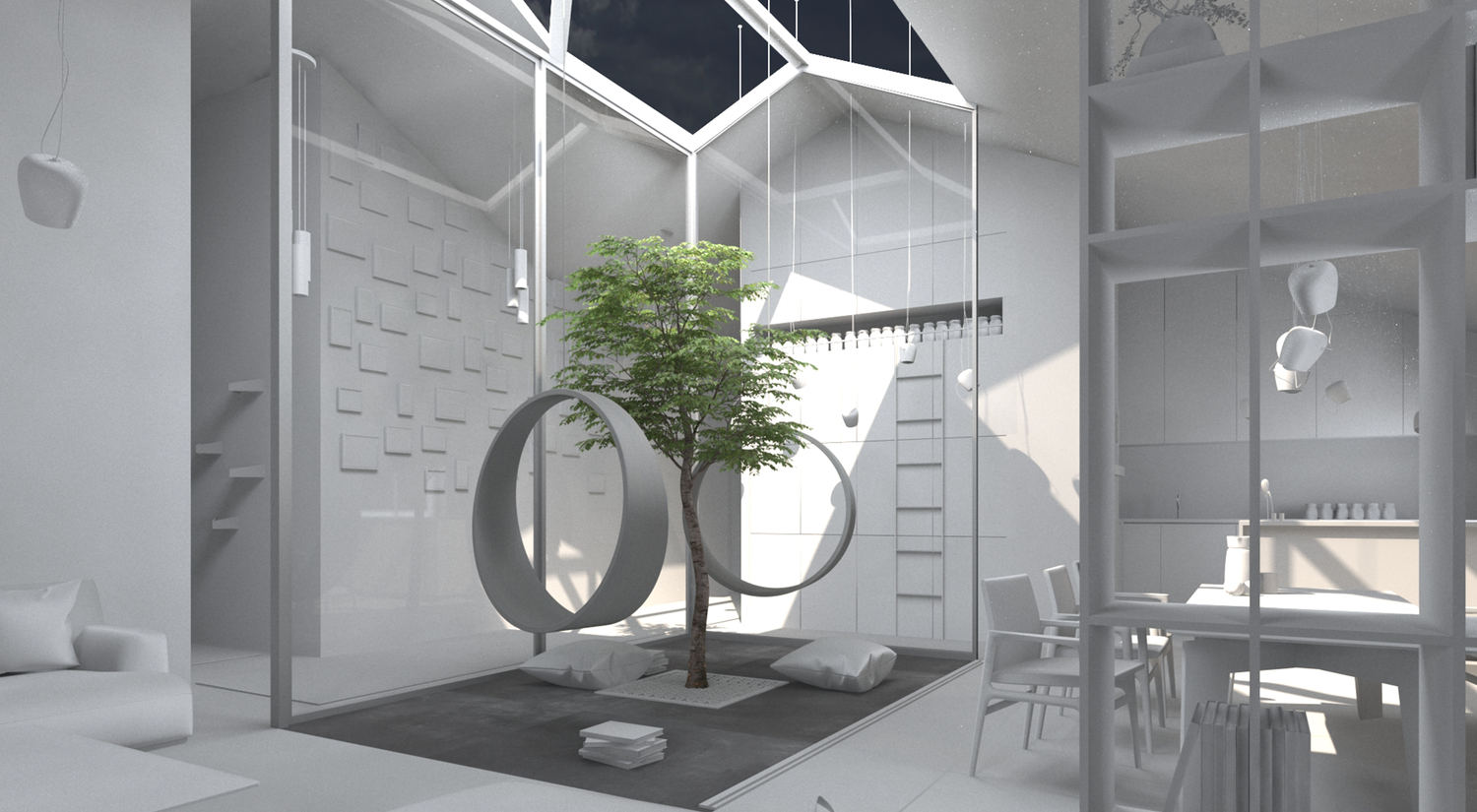 Space is designed for two adults and three children. This is a loft space designed during COVID lock down, so the idea was to bring part of nature inside.