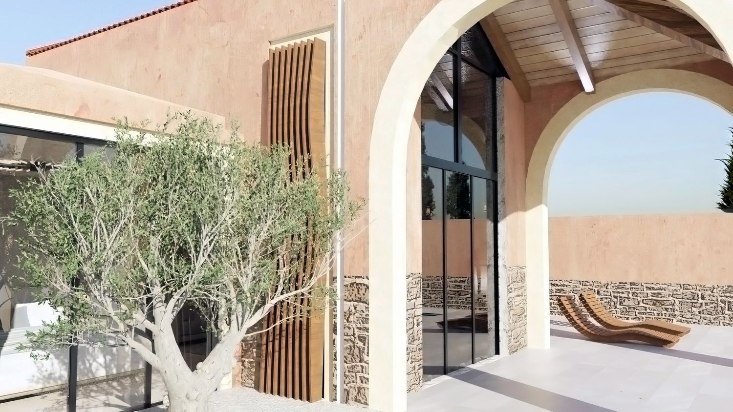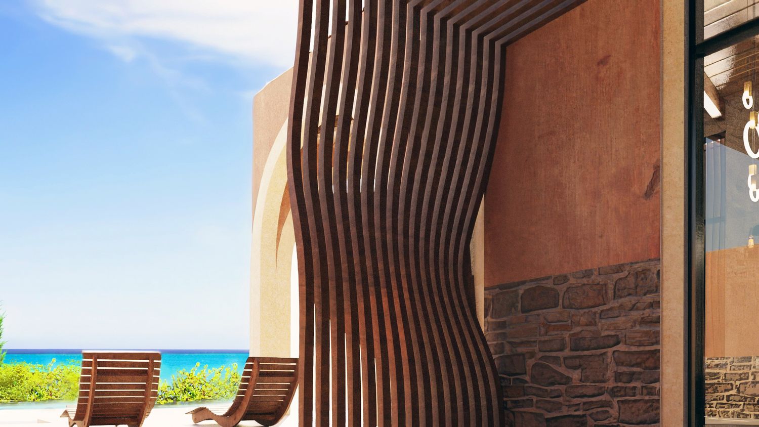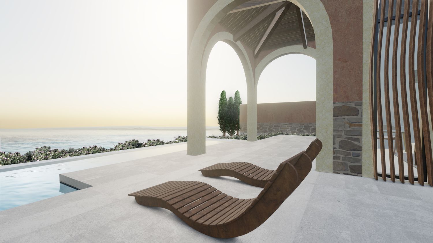"RITSO Resort" seamlessly merges modern architecture with Monemvasia's traditional essence, crafting a captivating, one-of-a-kind ambiance. Luxurious pavilions, blending contemporary aesthetics with local heritage, feature Monemvasia cistern-inspired roof channels and private pools, offering mesmerizing vistas. Natural materials like stone, wood, and metal infuse warmth and authenticity, while the innovative Brise Soleil design creates a unique atmosphere. This architecture forms the backdrop for immersive guest experiences, allowing them to be the heroes of their unforgettable journeys, immersed in elegance and serenity.