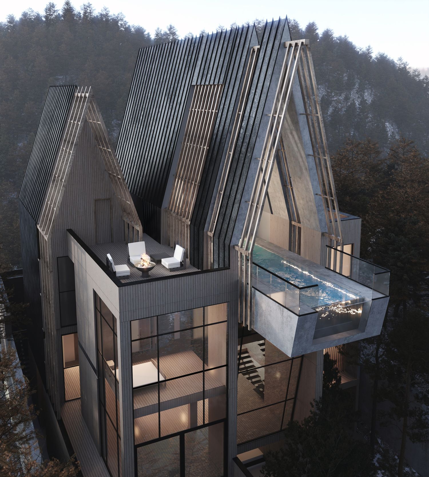 Exterior rendering and interior Design of Chartigh villa in 2021 which was honorable mentioned in the Architizer awards