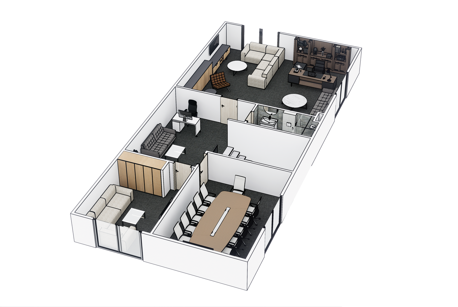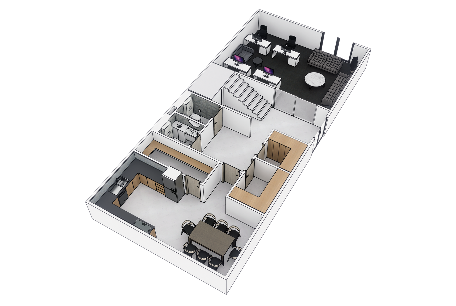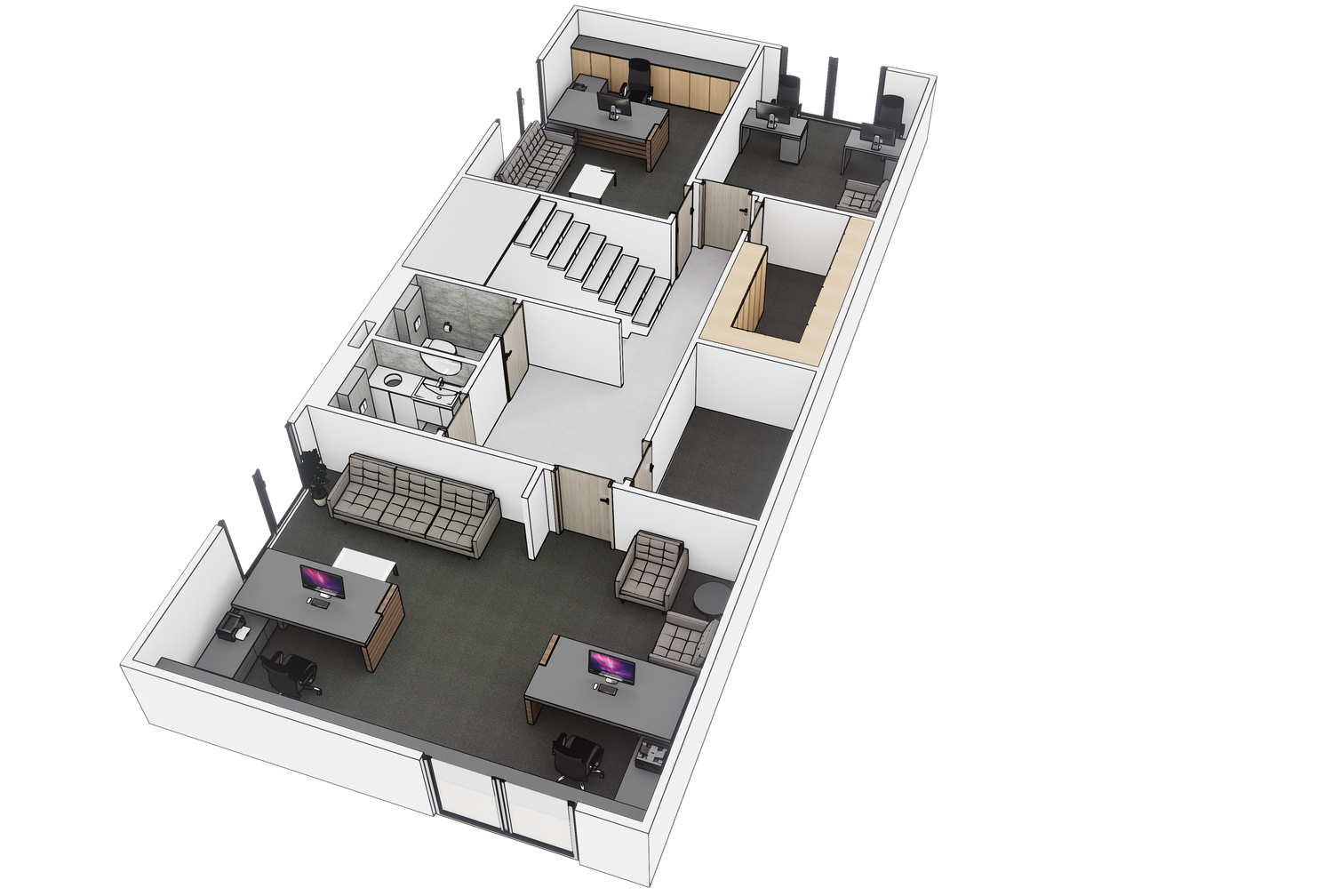Integration of ergonomic furniture and fixtures to enhance productivity and comfort for employees.