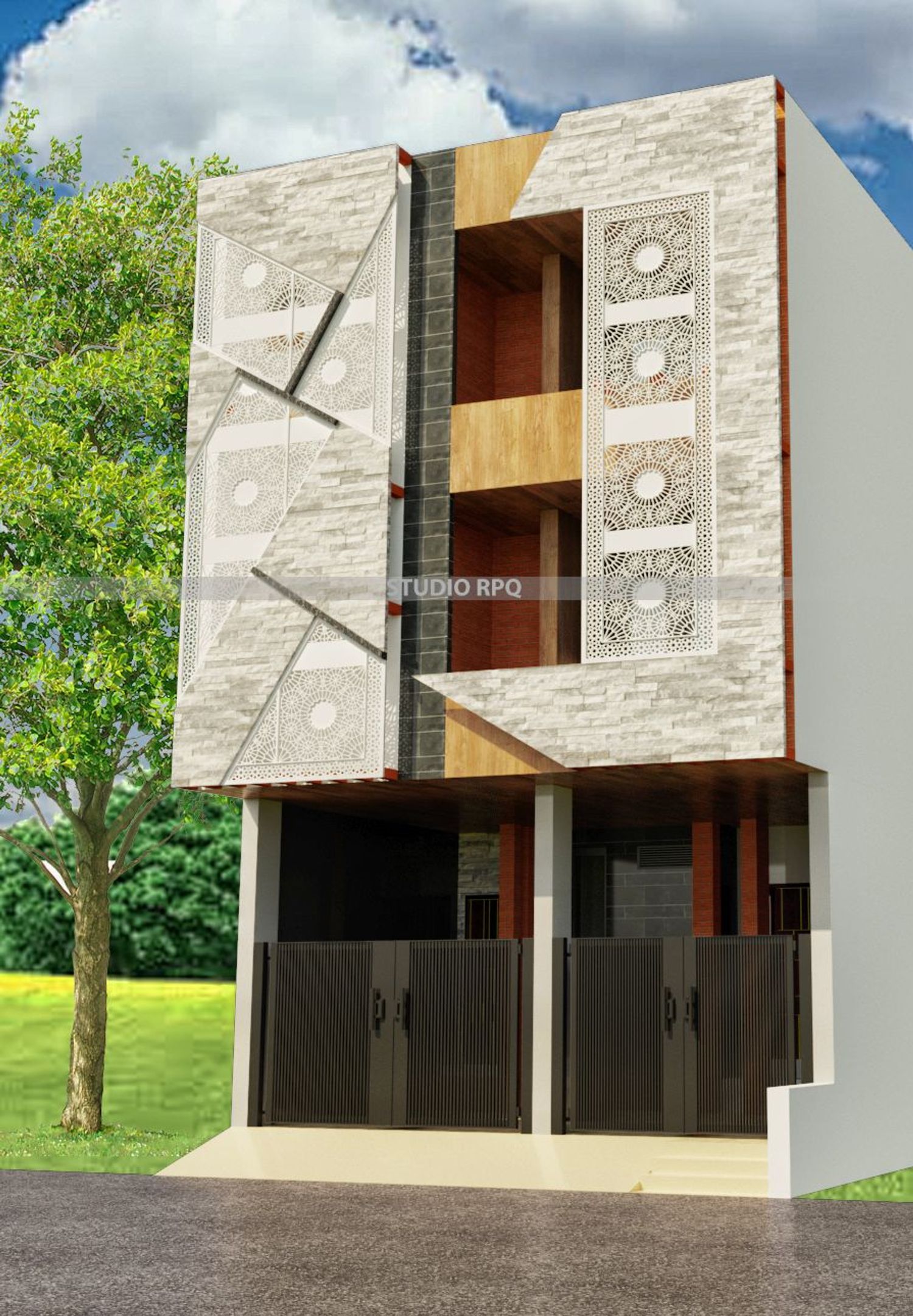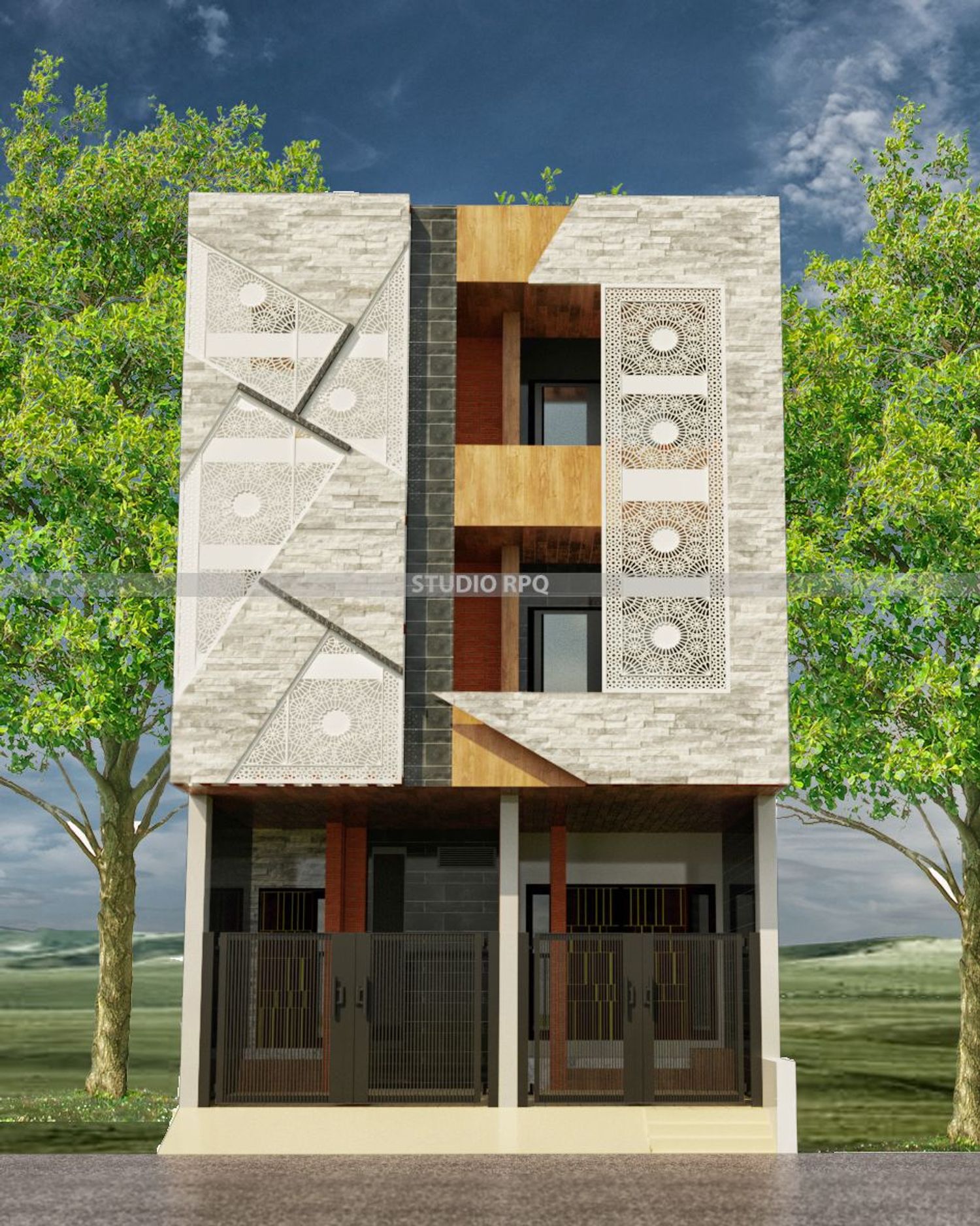 The concept behind this design is connectivity which is displayed in both facade and planning. The use of jali in facade is to convey the feeling of tradition, connectivity and openness. Double-height hall and cantilever staircase is used in planning to connect the floors visually and to give the feeling of openness.