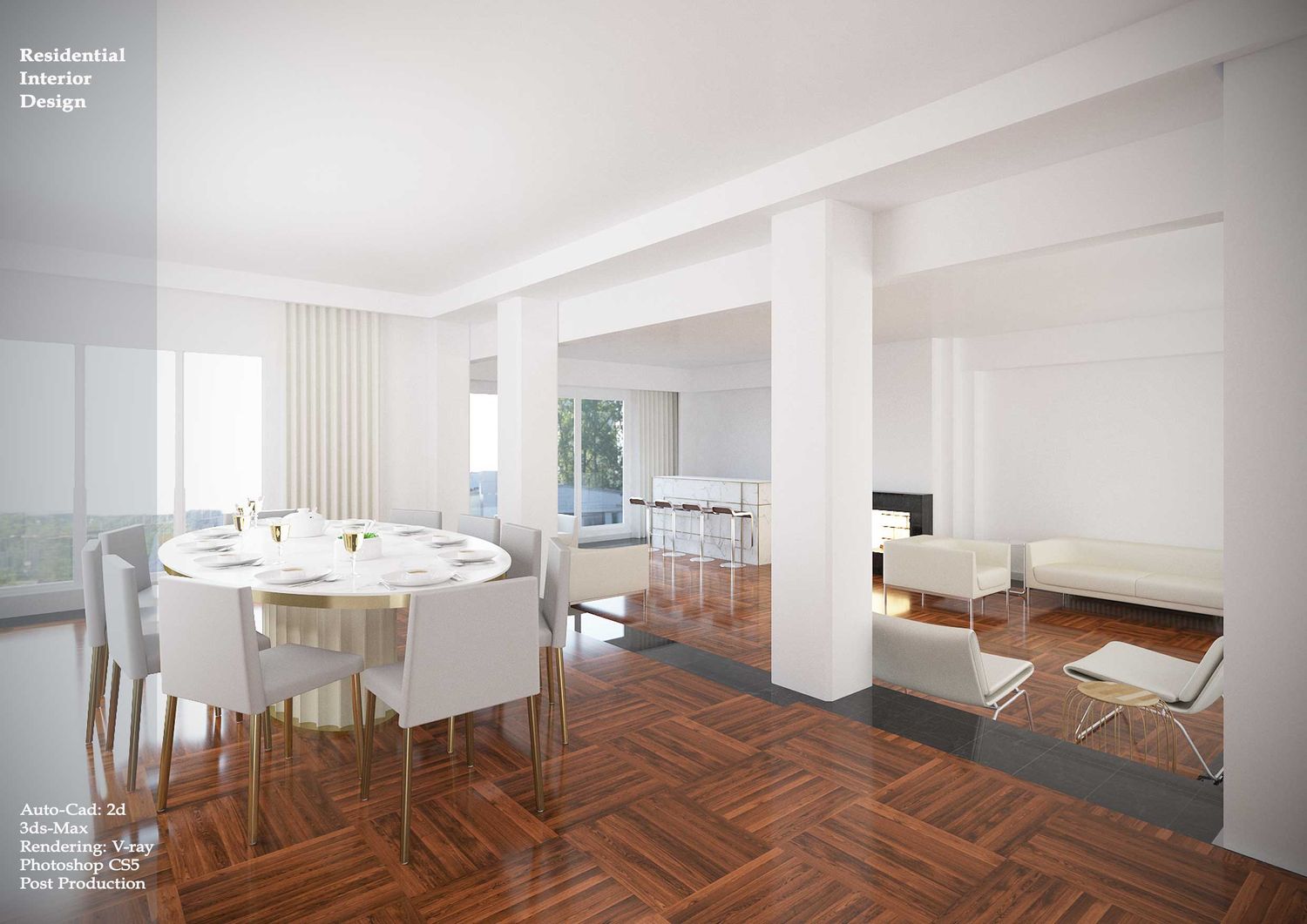 2D Drawing by Autocad 3D Modelling by 3ds-max Rendering by V-ray 3ds-max Post Production by Photoshop