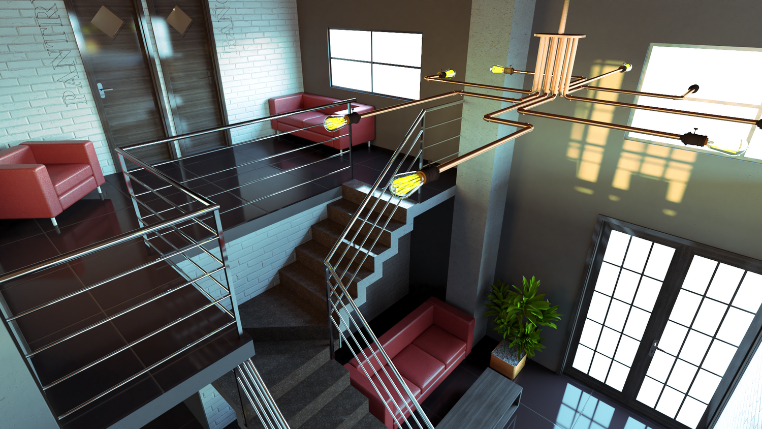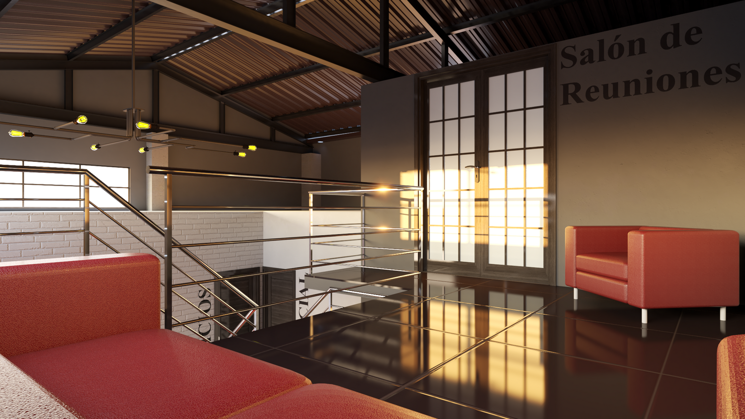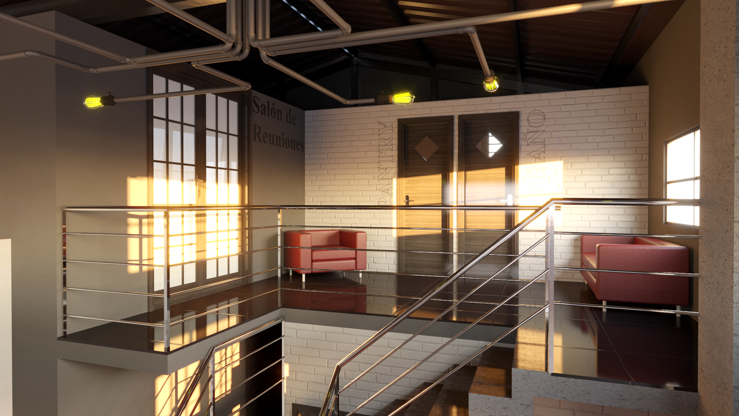 Algunos elementos como lámparas y muebles no son personalizados, sino que fueron tomados del 3DWarehouse de SketchUp dado que es una propuesta conceptual.