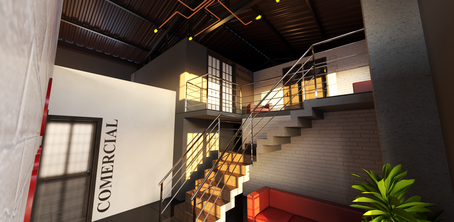 Se trata de la adaptación de una nave industrial con función de sala de máquinas, en oficinas para el personal de la empresa. En un espacio de 100 m² se debían distribuir 5 oficinas, baños, salón de reuniones y video-conferencia y pantry. Para ello fue necesario construir un entrepiso aprovechando el elevado puntal de la nave (4.80 m bajo viga). Dado el carácter industrial del complejo se optó por un diseño de interiores en el que predominara el estilo industrial. Además hay que tener en cuenta las limitaciones económicas de Cuba que claramente influyeron en el presupuesto de la obra, por lo que este estilo de diseño con muros sin revestir, instalaciones expuestas y materiales a vista, venía muy bien por el ahorro de materiales que suponía. Finalmente quedaron ubicadas en el primer nivel las oficinas, un lobby y baños; en el segundo nivel el salón de reuniones, pantry y baños.