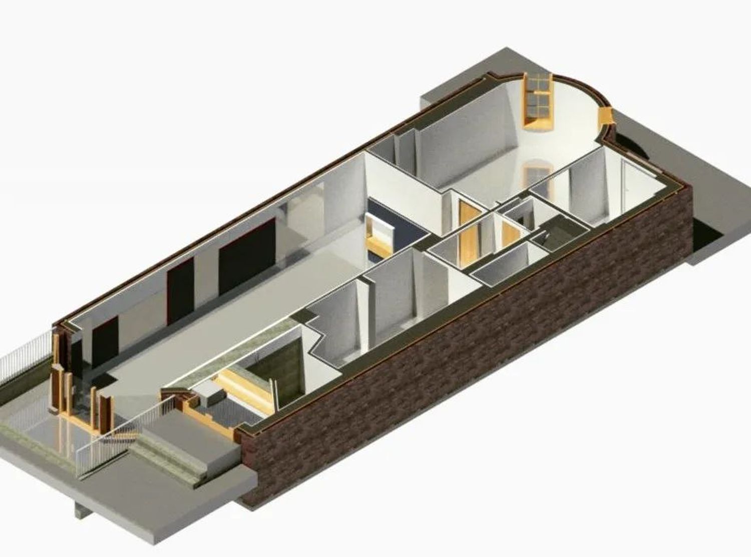 Architectural mock-up (with the interiors) of a brownstone on Newbury st. in Boston based on Point Cloud and Google Maps