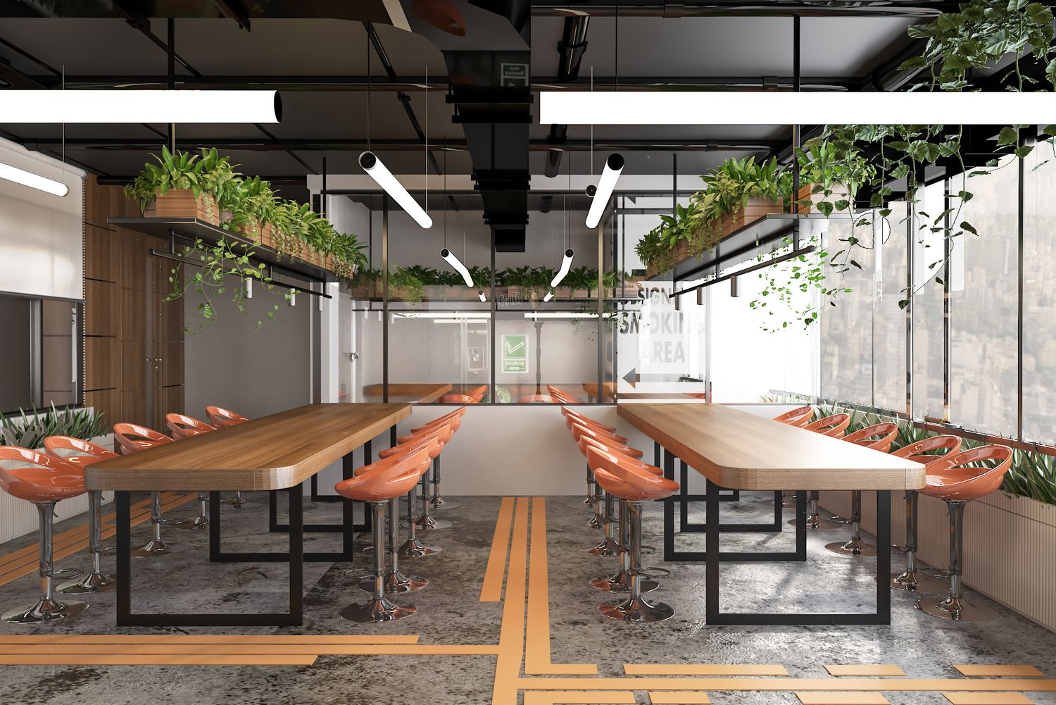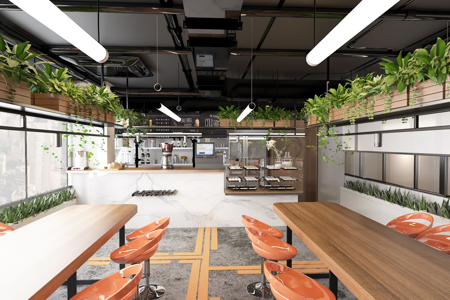industrial interior style cafeteria and dining space in beit el gomla supermarket headquarter