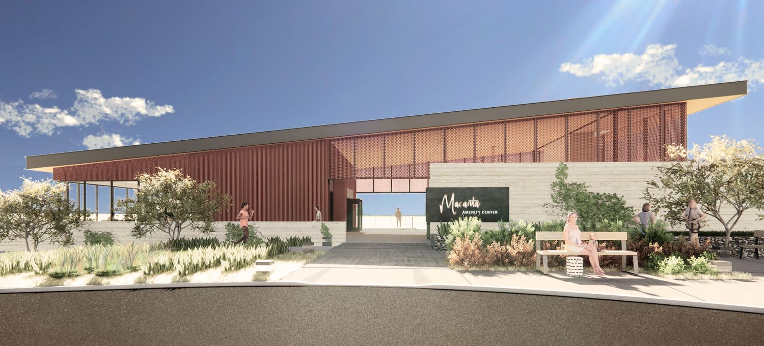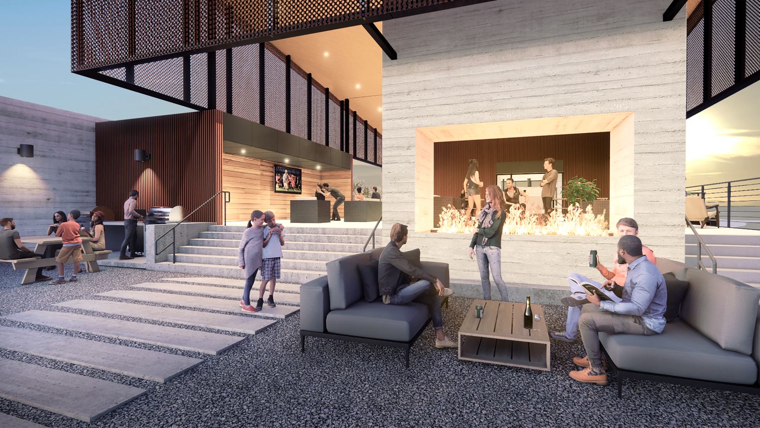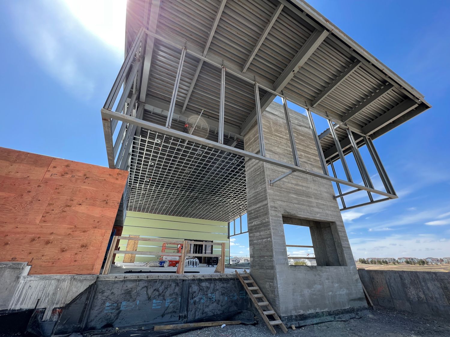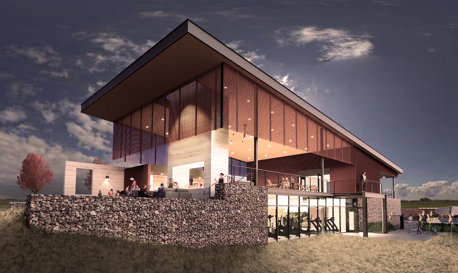 This amenity center sough to offer a unique community space for a housing development built on the principal of actively enjoying the outdoors. The biggest draw to the space is it's large covered outdoor gathering space meant to bring the community together for football games, community meetings, birthday parties, and the like. It's form shares a relationship to the existing grain silos leftover from the original site homestead as well as creates a gesture towards the main entry of the development. Weathered corrugated steel, board formed concrete, and gabion cages filled with rocks found on site were carefully selected as facade materials as they honored the existing structures cleared for this construction.