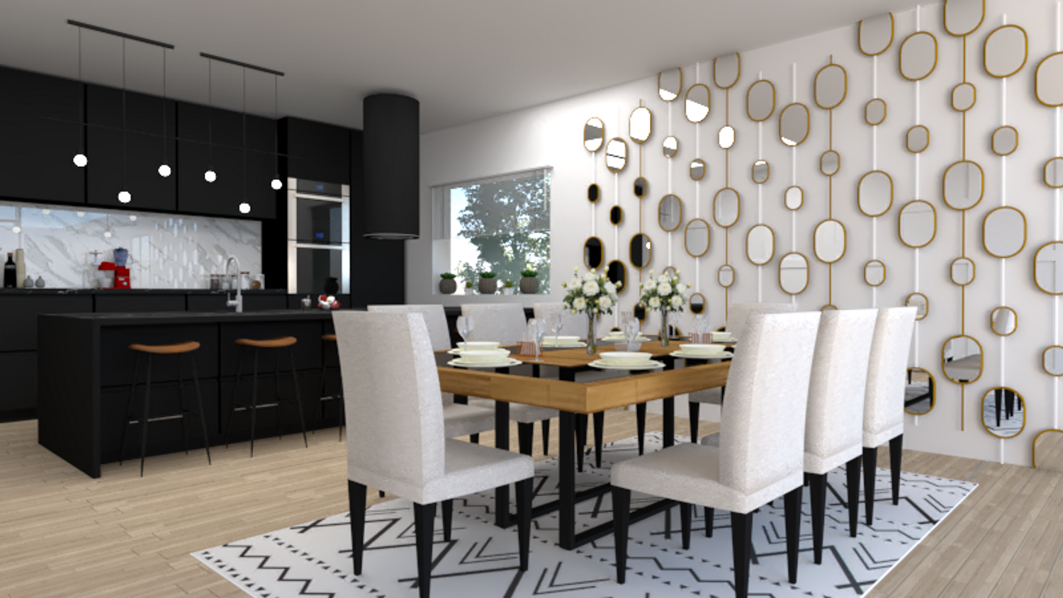 Effortlessly bringing together the kitchen and dining room seamlessly, while giving each space its own identity.