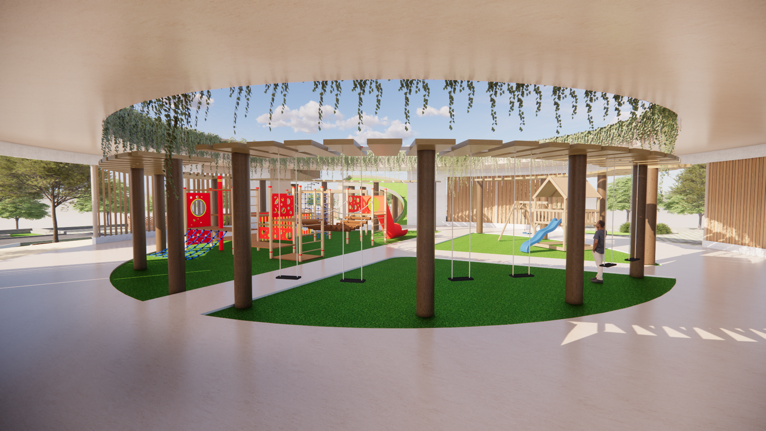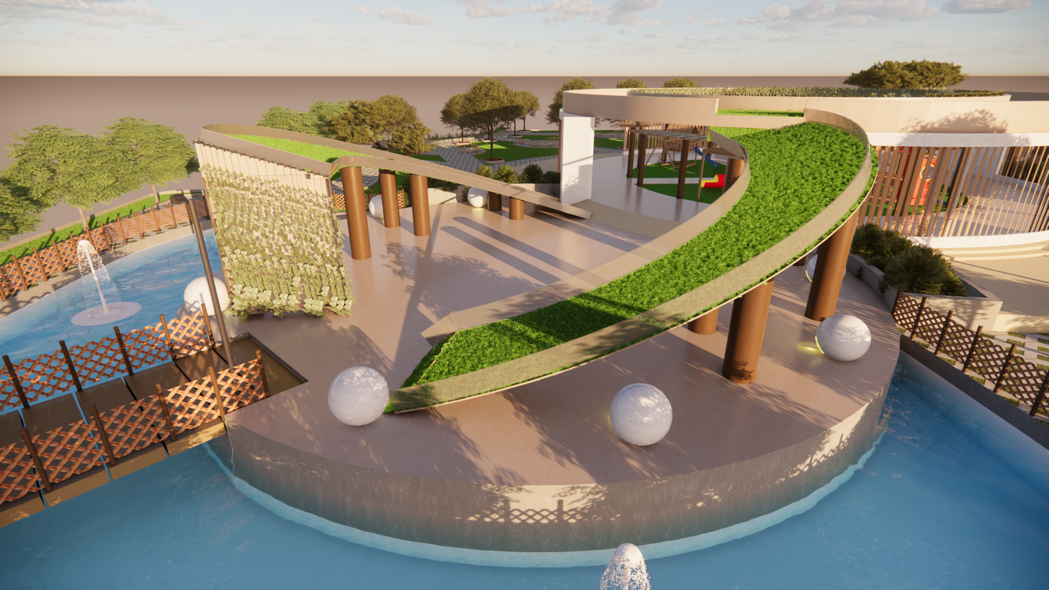 This is a communal space. Functioning as a public area for recreation, education and creativity. Using the concept of an approach to nature that makes the building use a lot of green areas.
