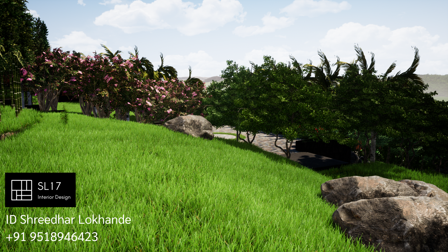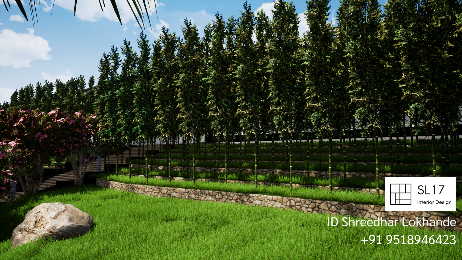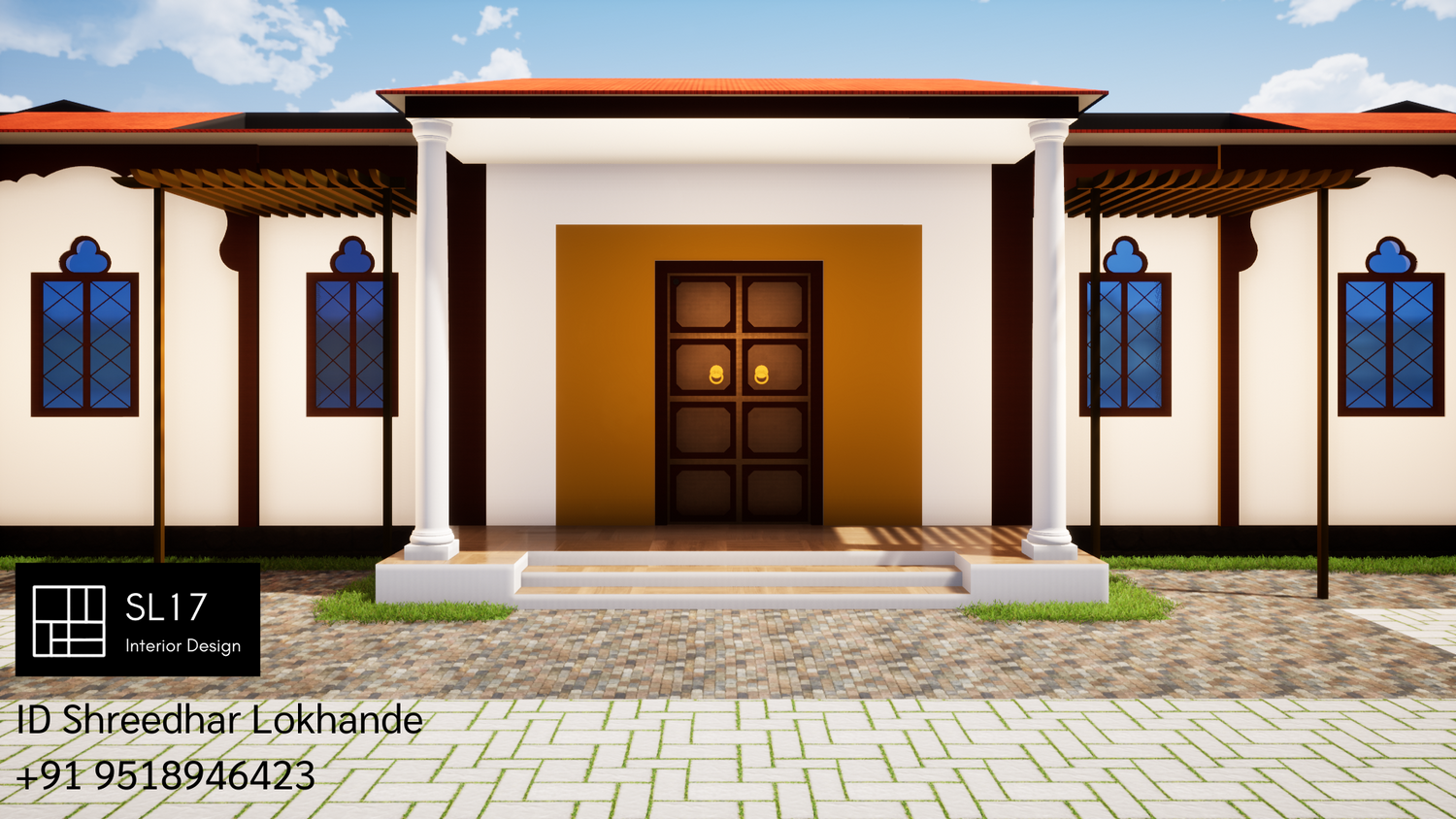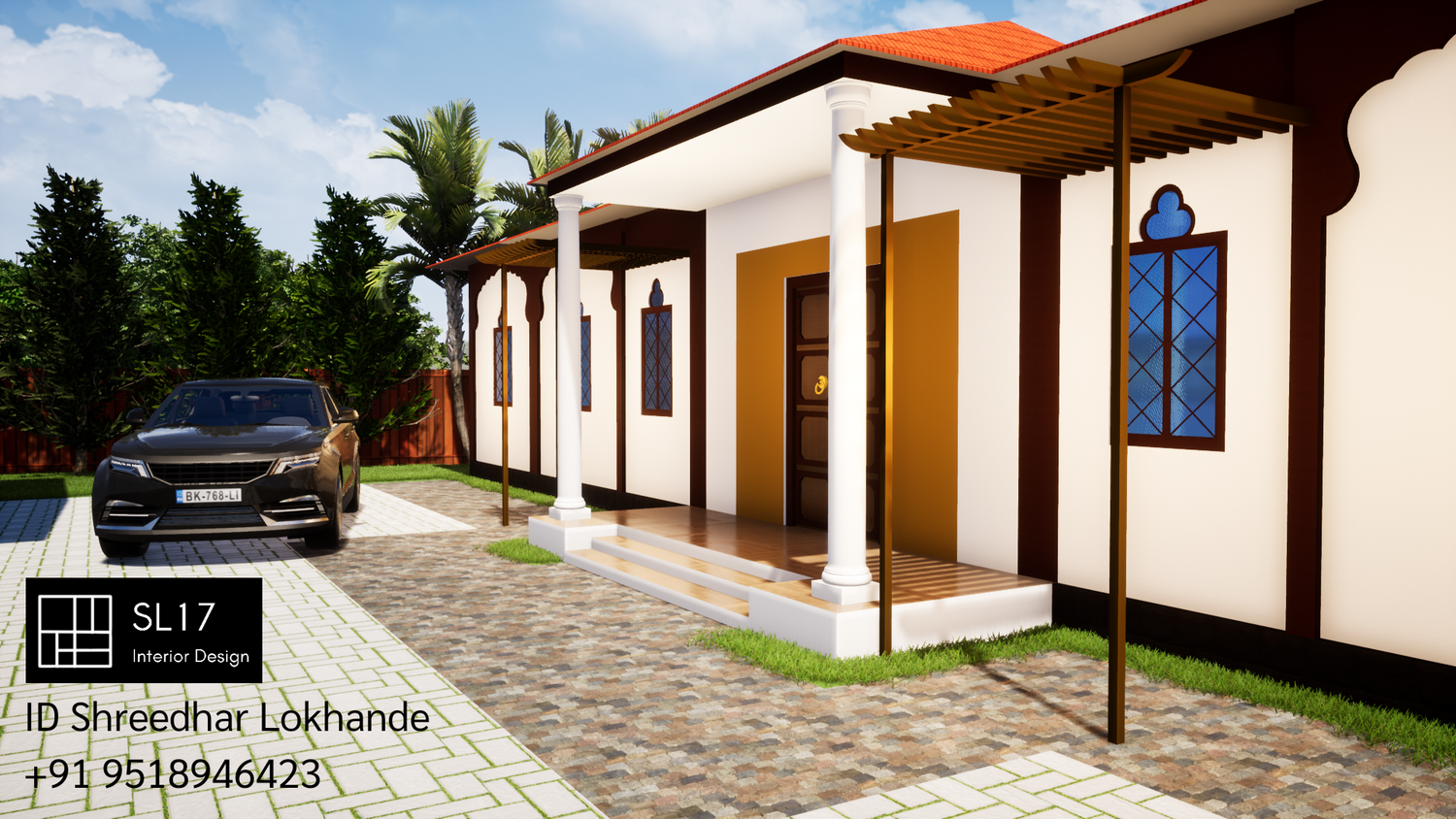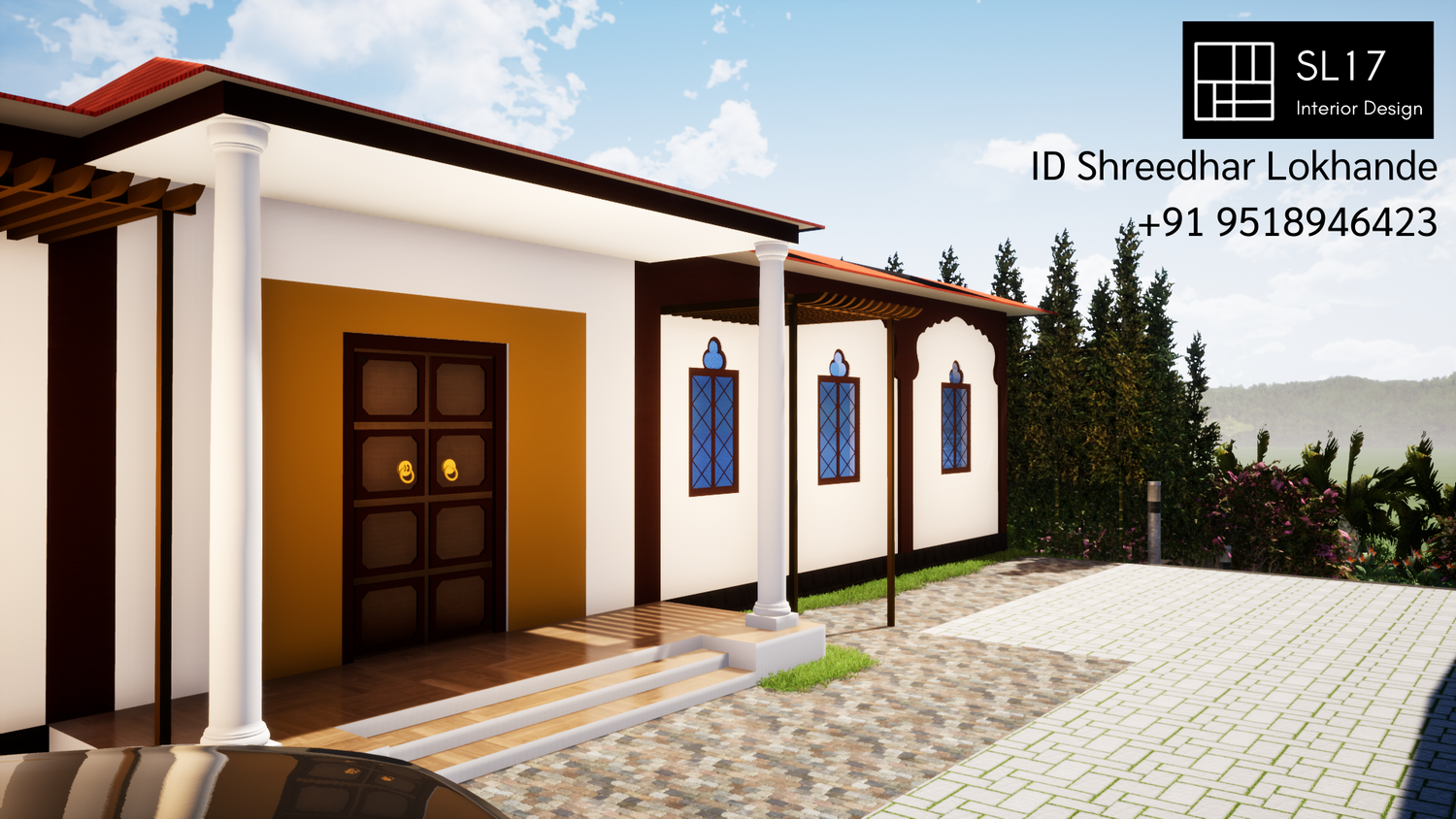 The site is located on sloped terrain and front elevation of villa is of Maharashtrian style.