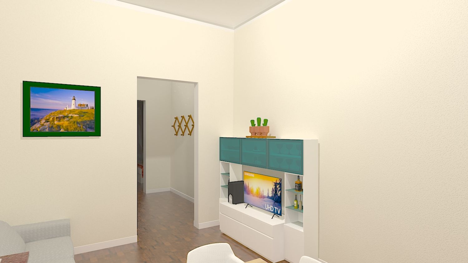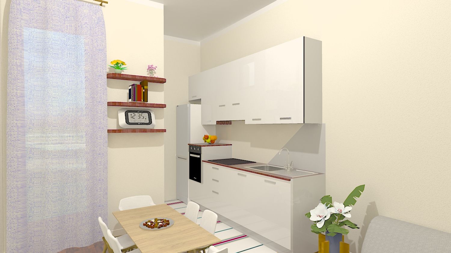 Bilocale completamente ristrutturato. Mi sono occupato personalmente della riprogettazione degli spazi e del rendering 3D completo di arredi, per avere una migliore idea degli ambienti e sponsorizzarlo ai fini della vendita