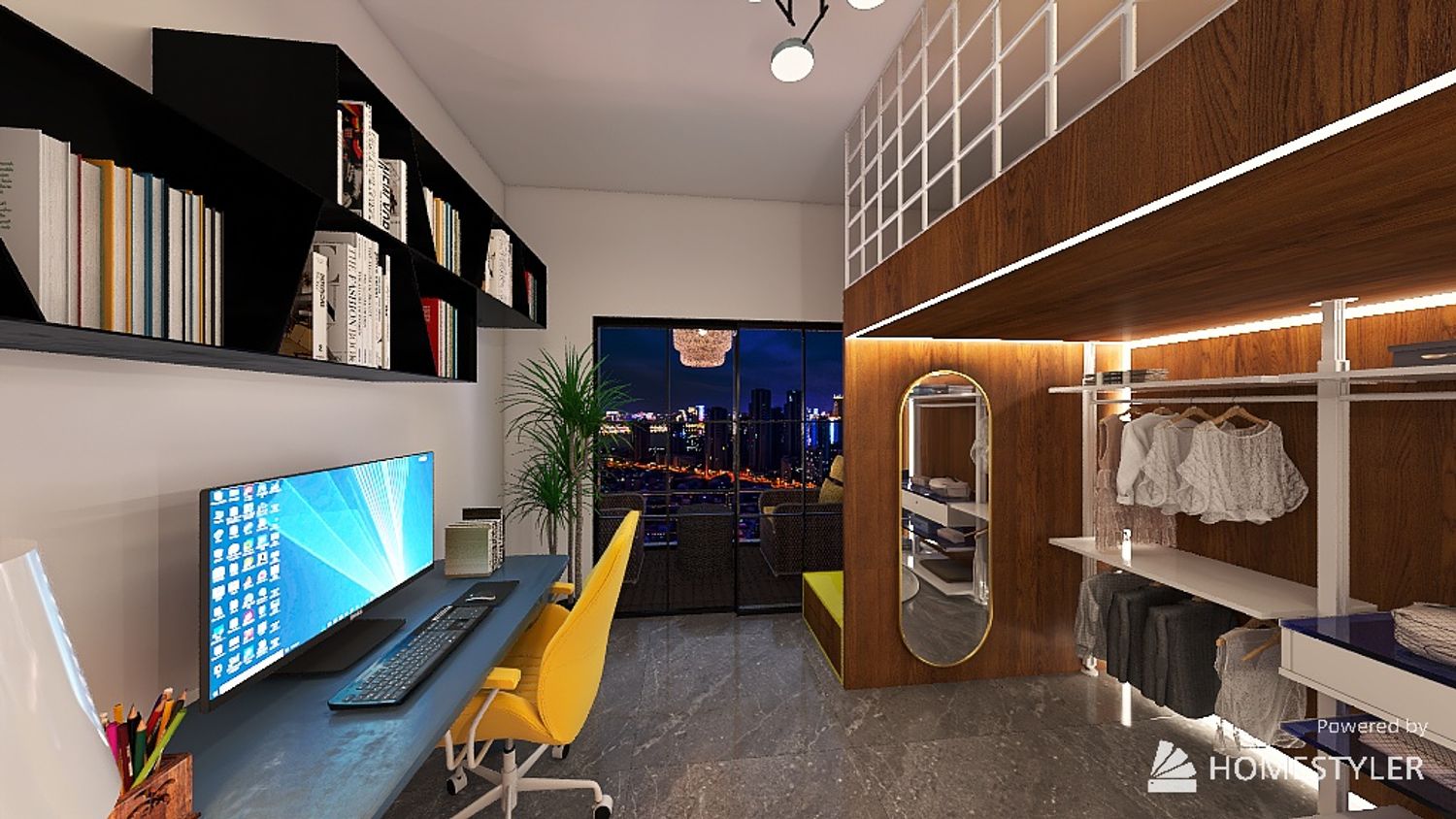 Benvenuti nella camera da letto di un giovane appassionato di pallavolo! Questo spazio unico riflette perfettamente la sua passione per lo sport e la sua personalità giovanile. Il design della camera è uno stile moderno e sportivo, dove elementi di decorazione e oggetti pratici si fondono armoniosamente.