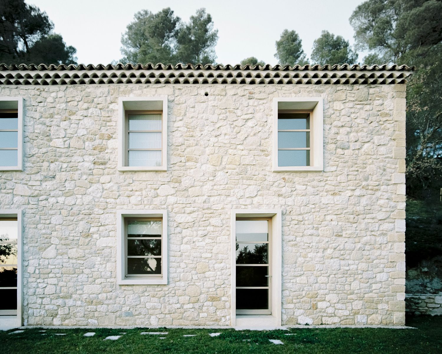 Respectful of its surroundings the house was designed to be an intimate refuge buried in the hills – one that would respect the site and the architectural history of the region. It sits at the base of a small, tree-covered hill in the middle of the French country-side. When summer comes around it progressively nestles itself in the forest, without ever losing views of the vineyard below.