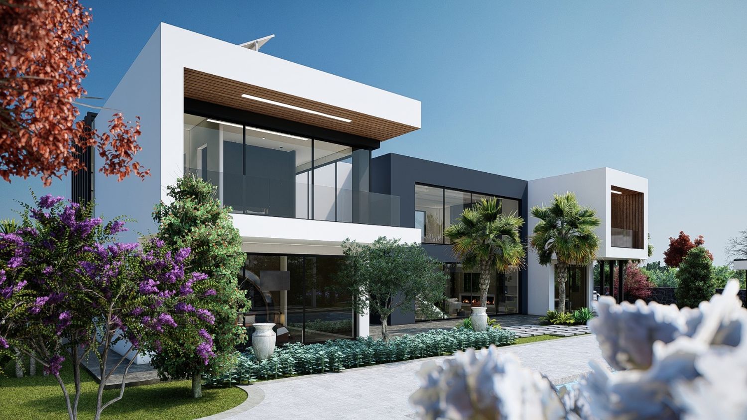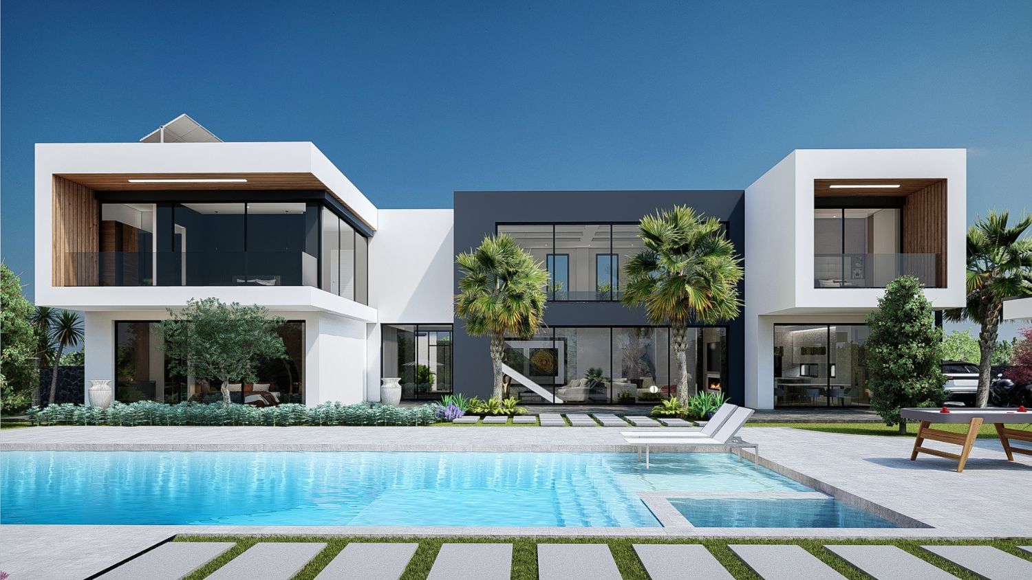 Design project for the modern 630 m2 villa, including 2 floors and a basement for the sunny Turkish city.