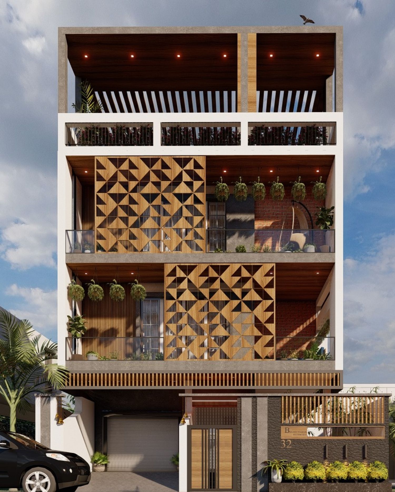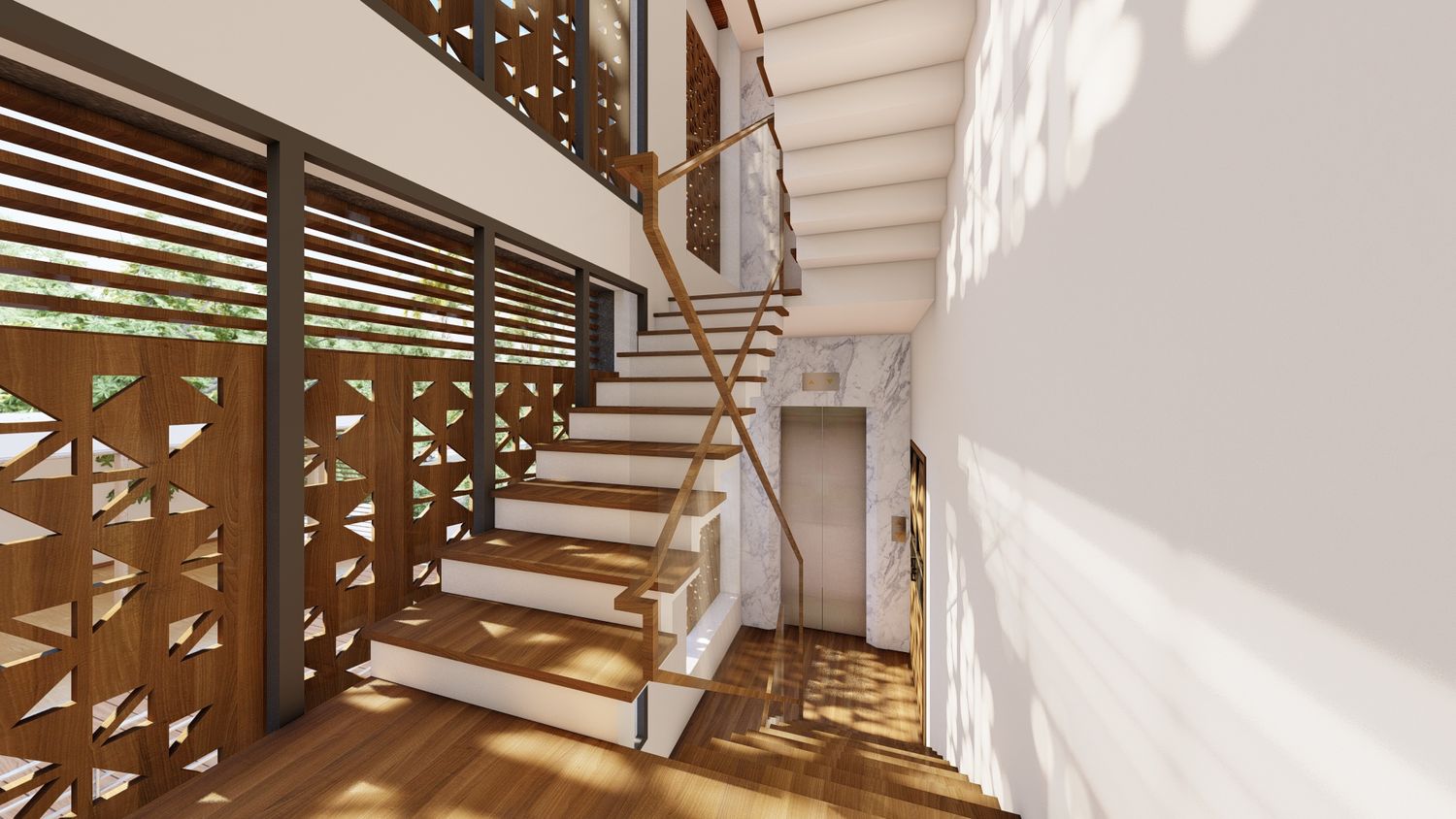 The exterior features a coordinated palette of white, stone texture and wood texture, which gives it a clean, simplistic and modern visual impression. The building meets the functional demands and forms a contrast of solid and void through the spaces. It is well integrated with the surrounding.